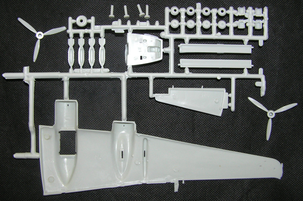 Я гражданскую машину собирал и криминала не заметил.Собирается не хуже большинства моделей того периода. Разработана она явно на базе этой . С иным фюзеляжем и мотогондолами. Остальное - такое же.