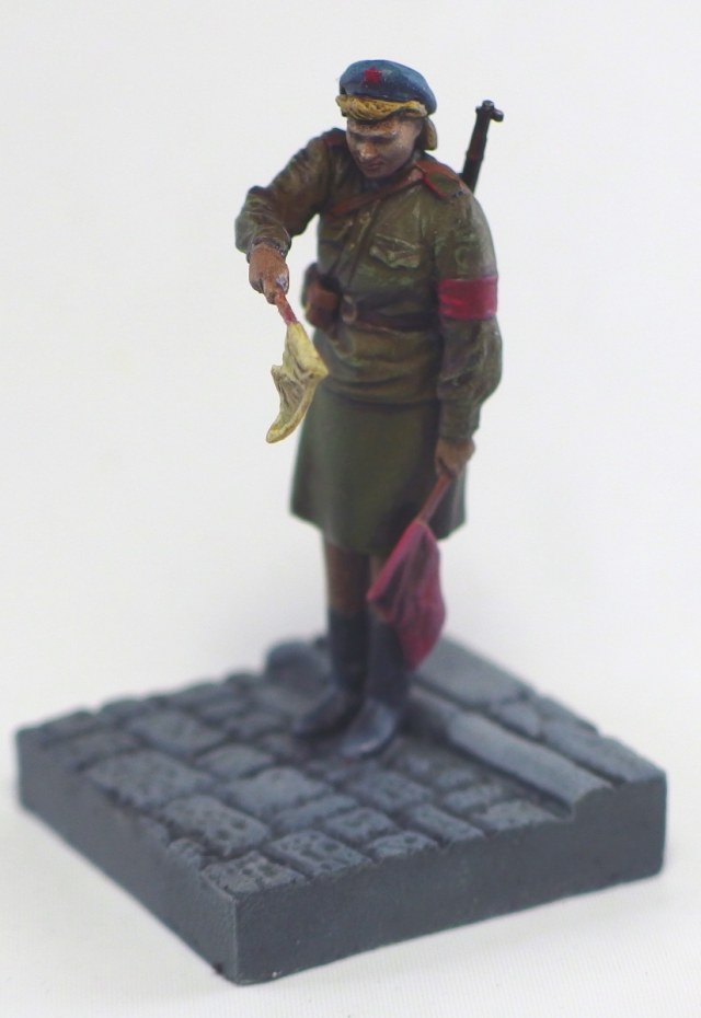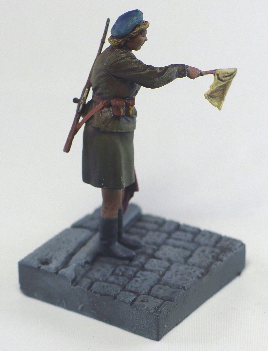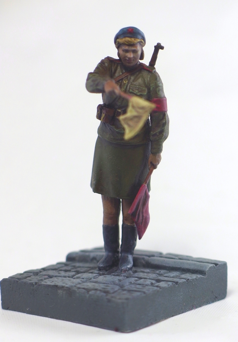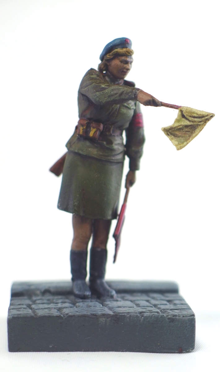 Миниартовская регулировщица из набора Jeep Crew на подставке от Barbakan. Решил собрать отдельно для тренировки с аэрографом.