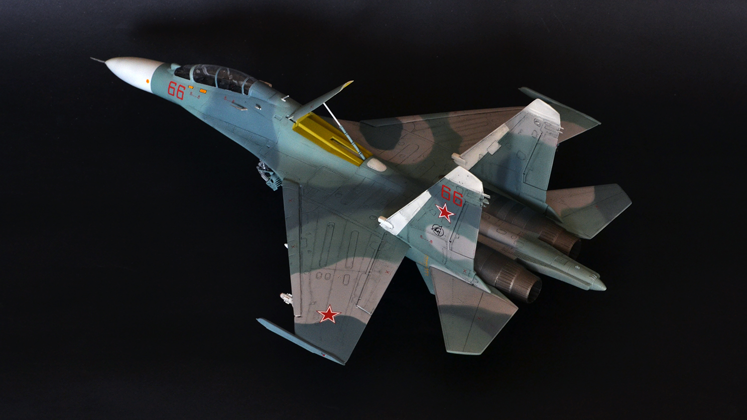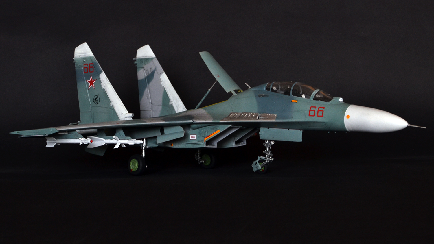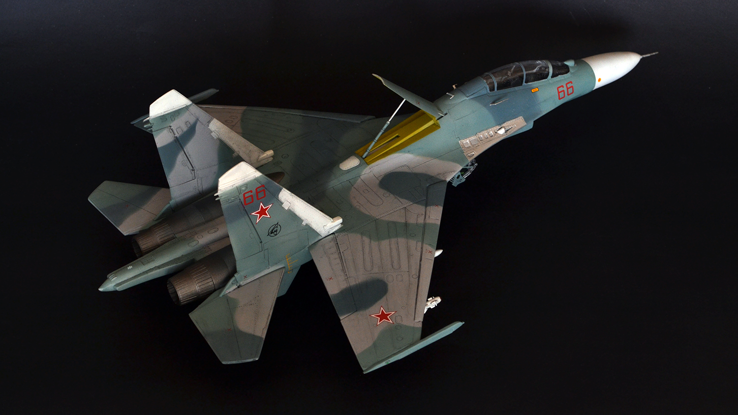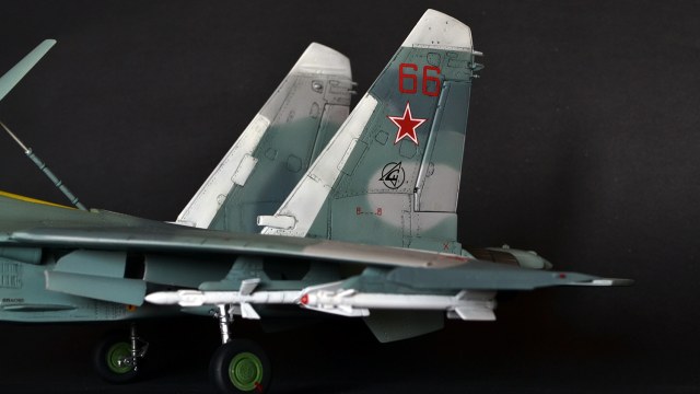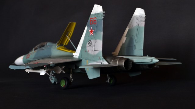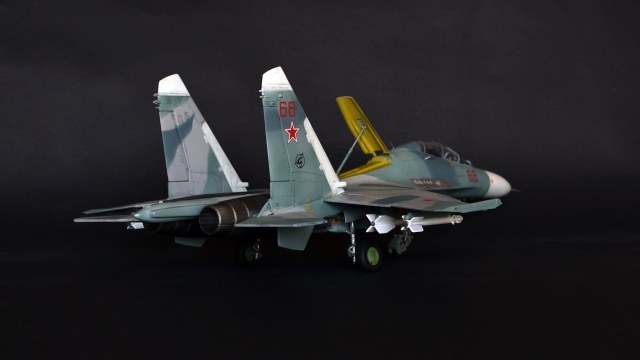 Ну что сказать, мне как человеку далекому от военной авиации итог кажется вполне похожим на Су-27УБ, а пластик после Амоделовского Ан-24 и ВЭшного Як-40 вообще песня. Ну пошпатлевал местами, кое-где подшкурил да и всё.