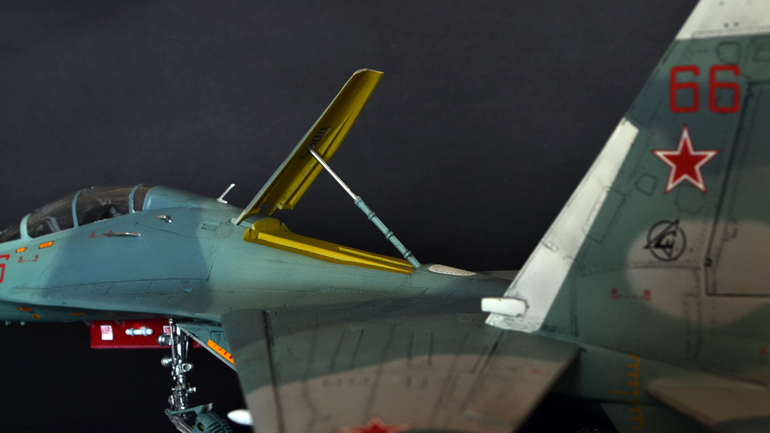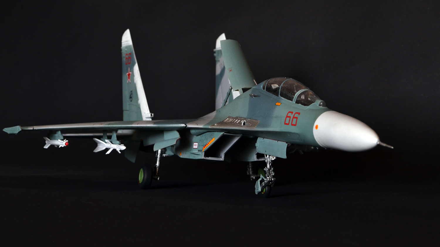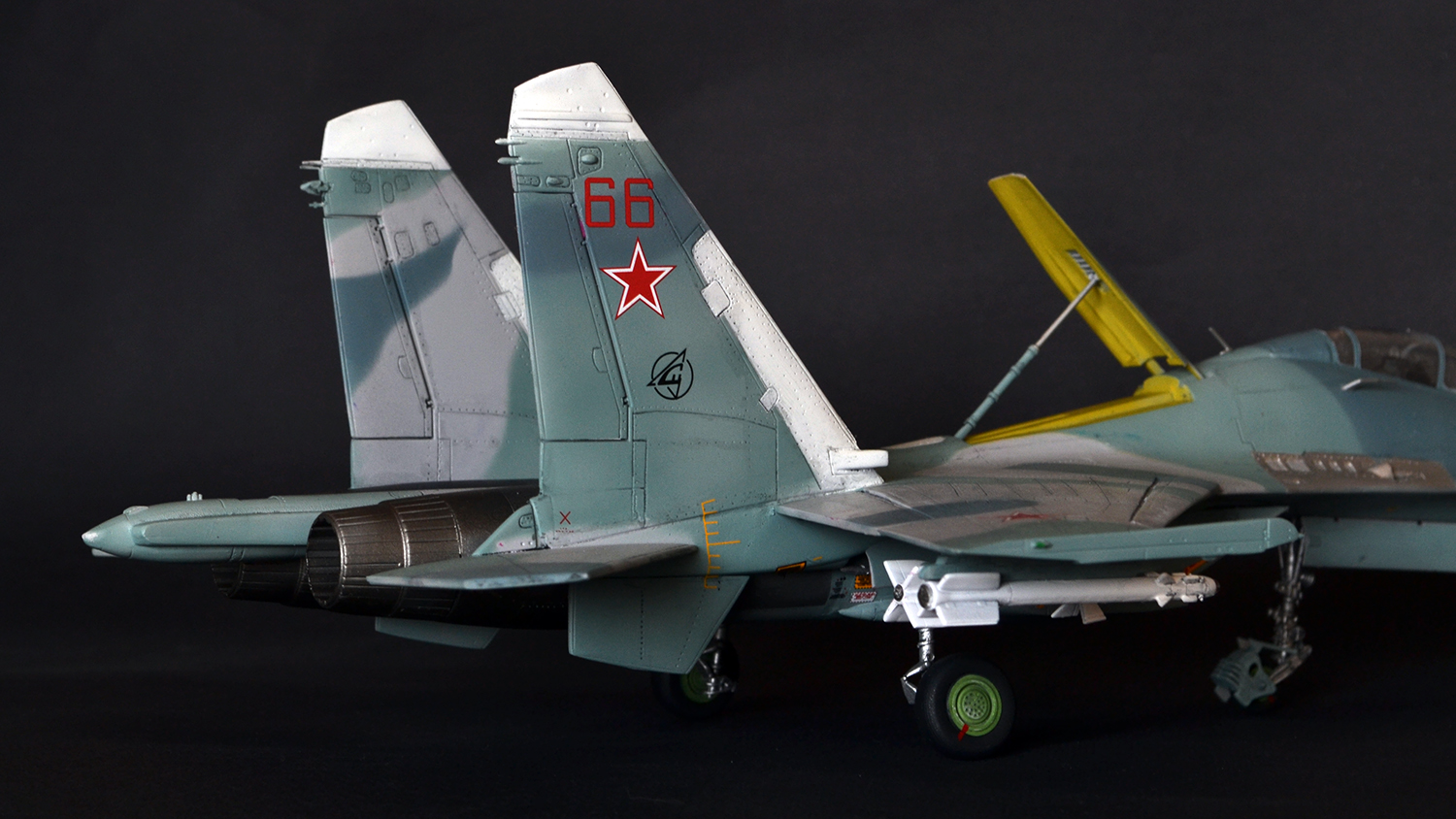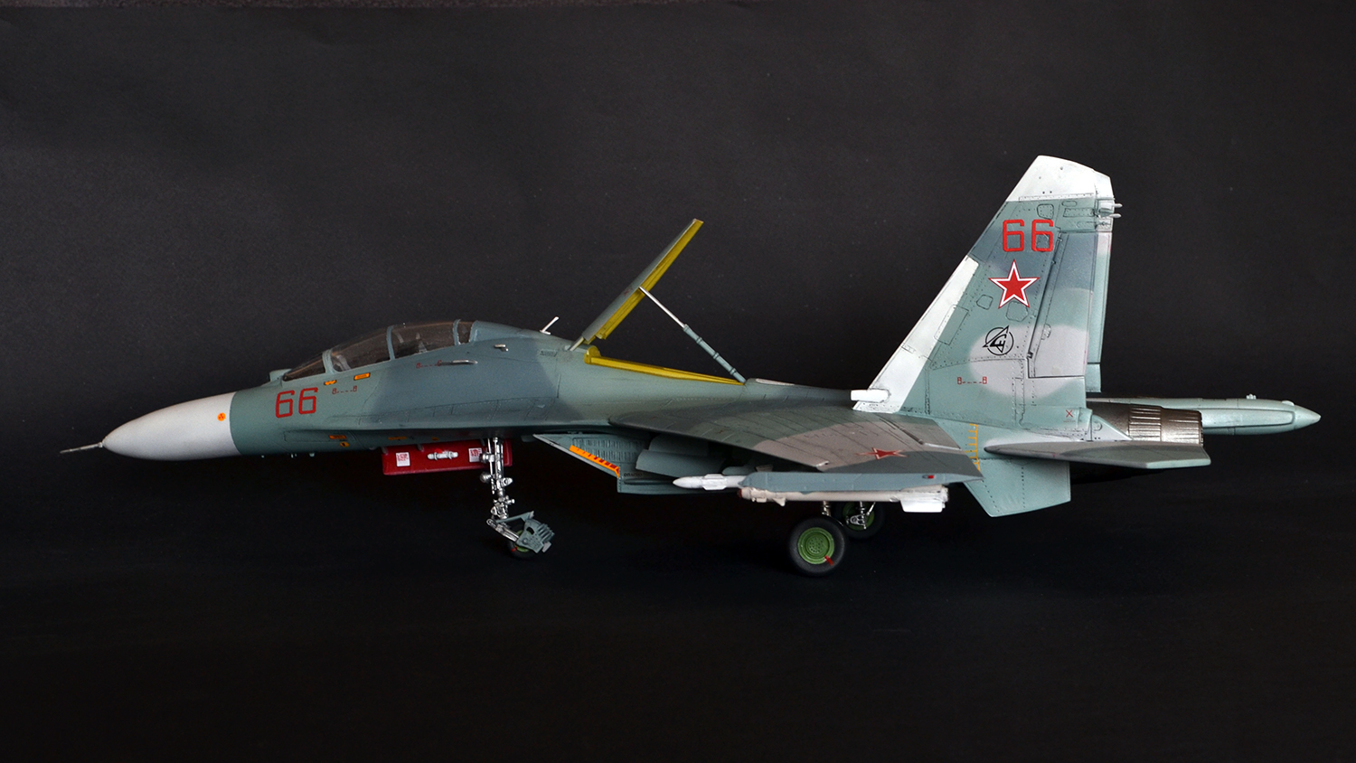 Ну что сказать, мне как человеку далекому от военной авиации итог кажется вполне похожим на Су-27УБ, а пластик после Амоделовского Ан-24 и ВЭшного Як-40 вообще песня. Ну пошпатлевал местами, кое-где подшкурил да и всё.