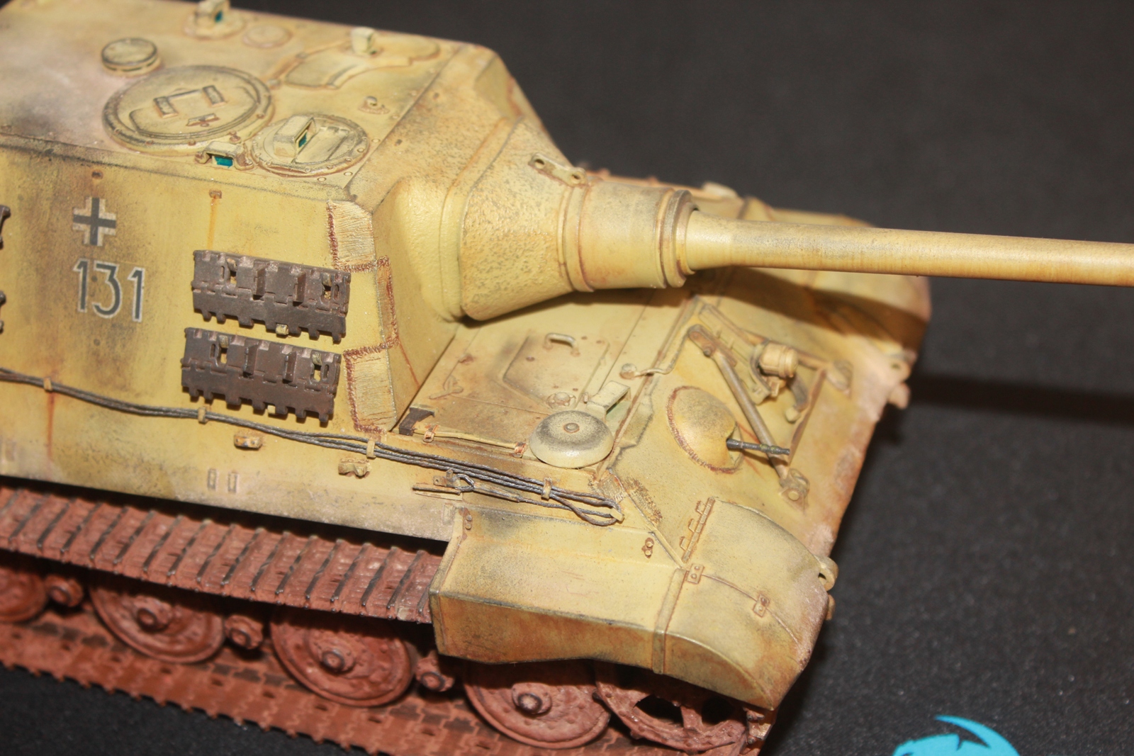 Известная модель от известного производителя. Из дополнений только самодельные тросы и их крепления. Краски и смывка от Тамии, пигменты миговские.