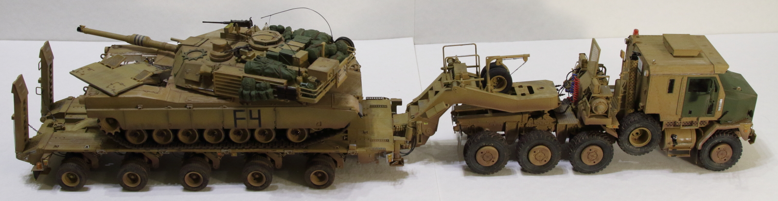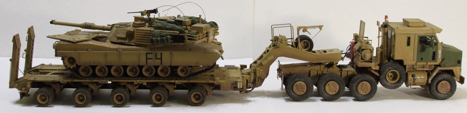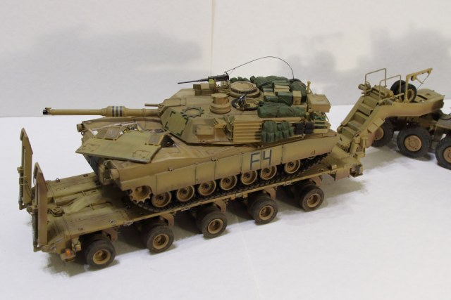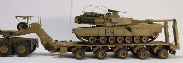 Абрамс на тралле от Тамии, пытался сделать двигатель. Чет не совсем удачно вышло. Ну, да ладно. Он в фотосессии на модели просто так стоит. Так сказать для антуража.