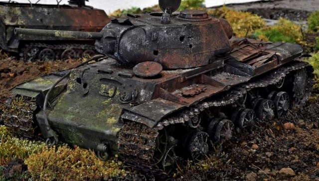 Представляю модель советского танка КВ-1С в таком необычном виде или состоянии. Отличный набор набор, но требует должного подхода.