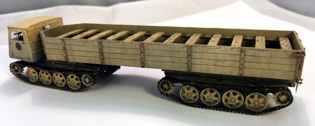Очень прикольная и необычная вещь! Даже не понял, что 72-й. Странный более темный цвет траков на третьей и пятой фотке. Их вообще, нужно бы добавить. Советую сделать заглавное фото так, чтобы сам тягач был виден