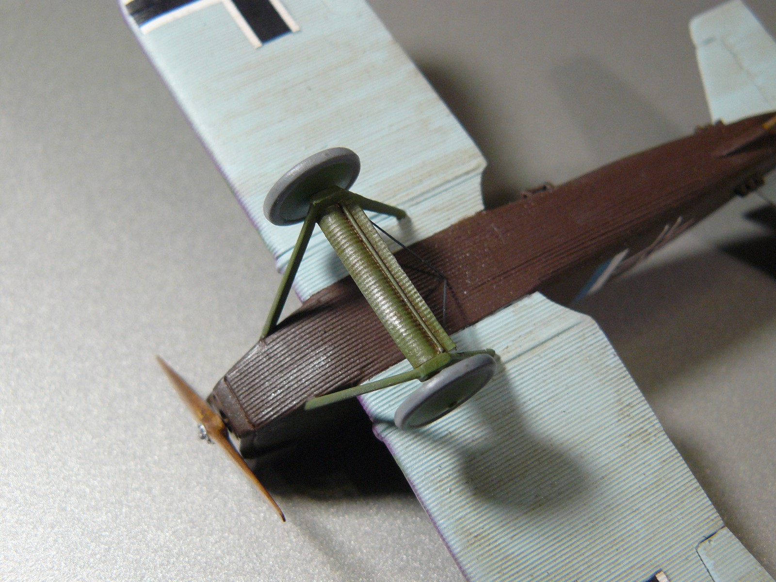 ФЮЗЕЛЯЖ. Интерьер из фольги, уменьшена толщина бортов, убран стык гофра за кабиной. Экраны двигателя и желоба пулеметов из мягкой алюминиевой жести.