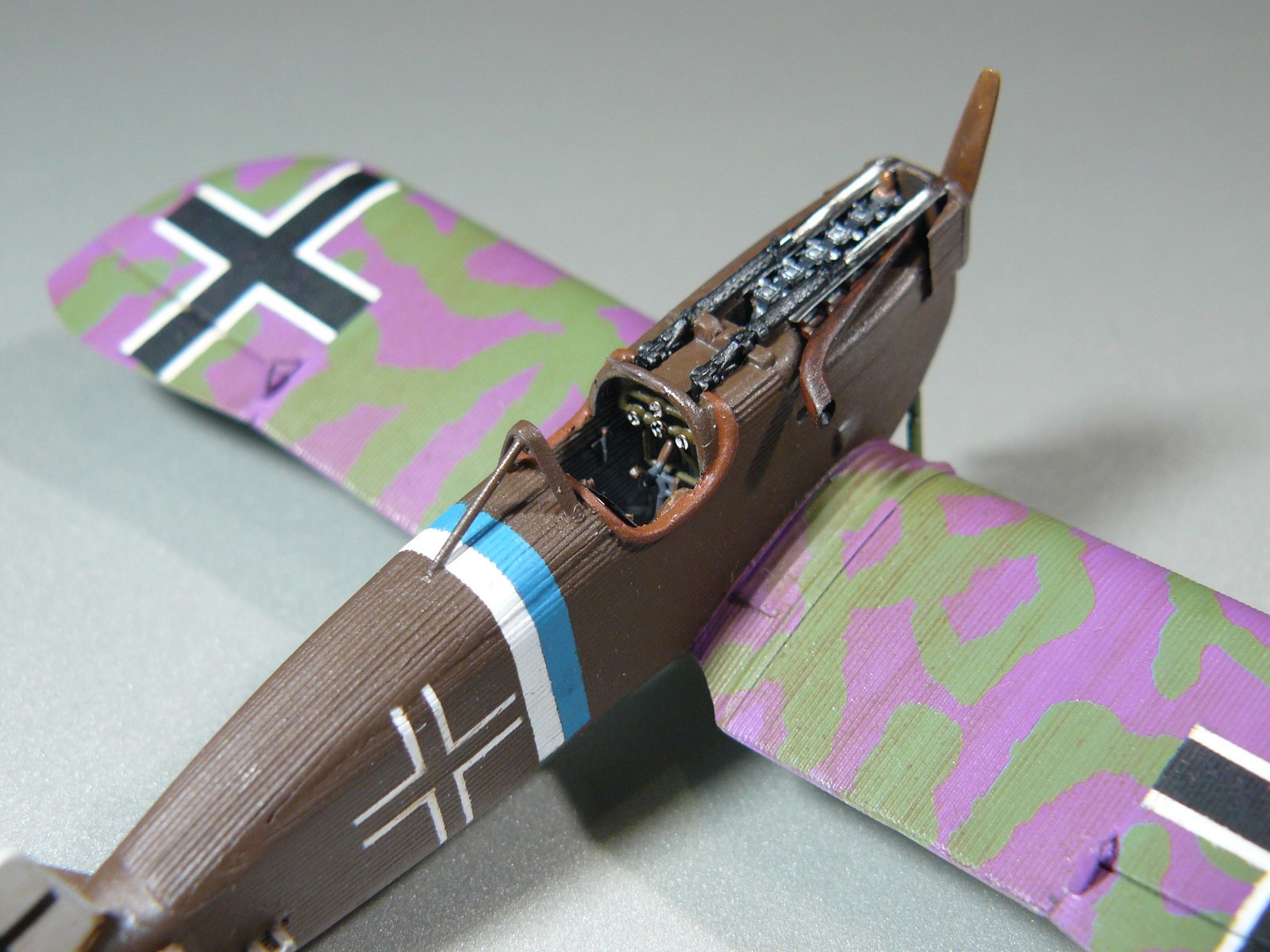 ОКРАСКА. Валлехо, лак - Футура и Хамброл Сатин. Декали не применял, все опознавательные знаки накрашены. Накраска знаков доставила немало неудобств, так как краска норовит затечь под маски из скотча. Борт - с неустановленным серийным номером, базировался где то в Бельгии.