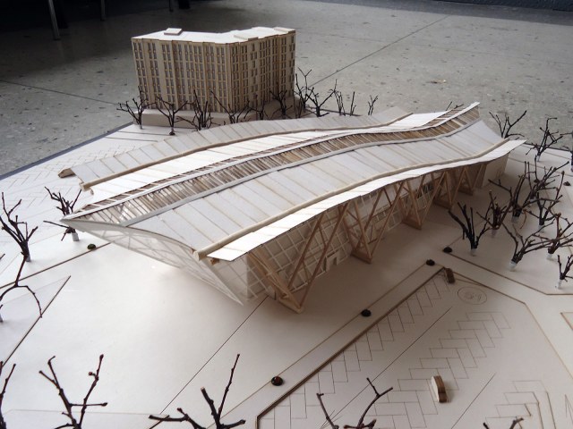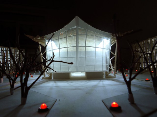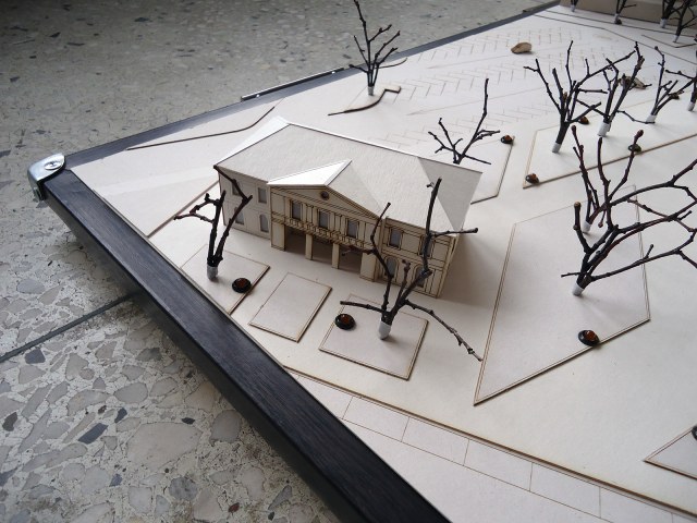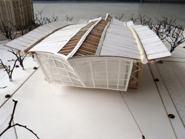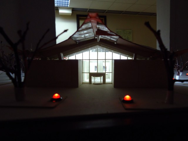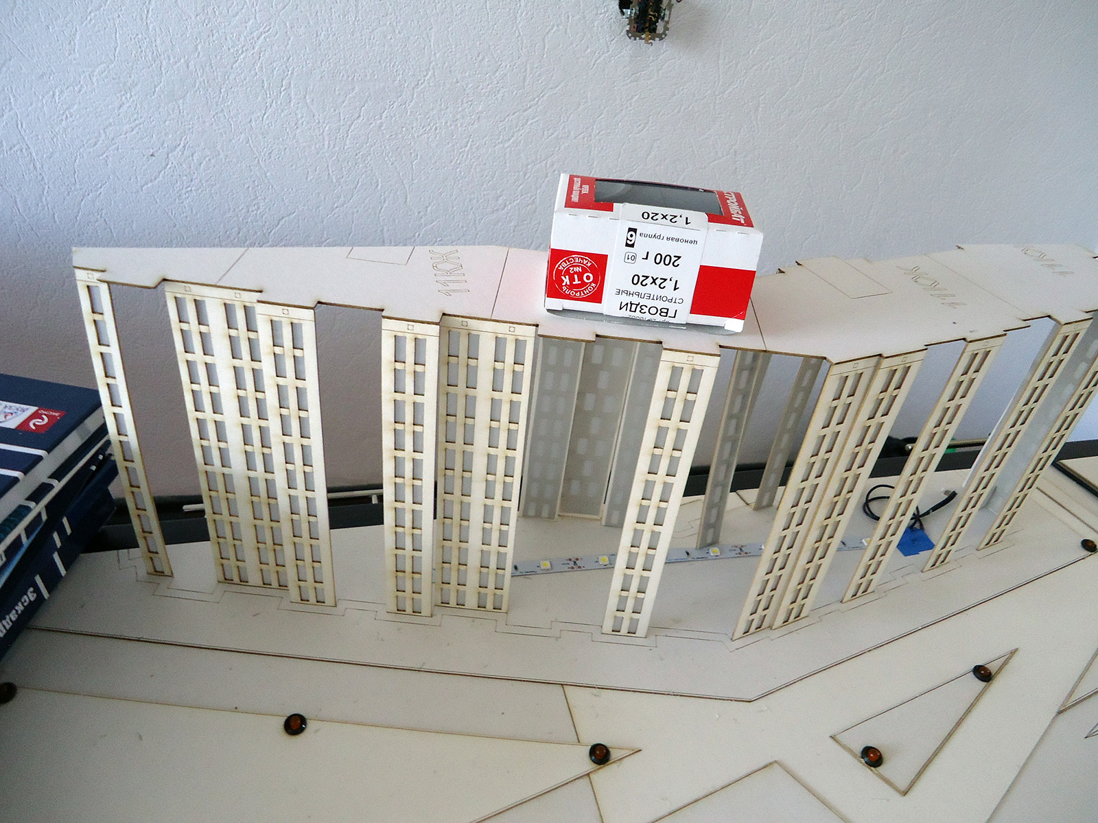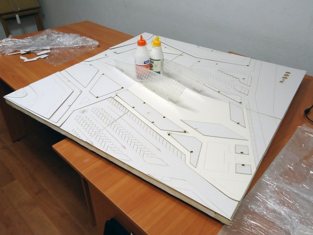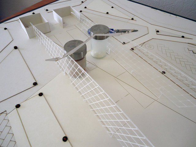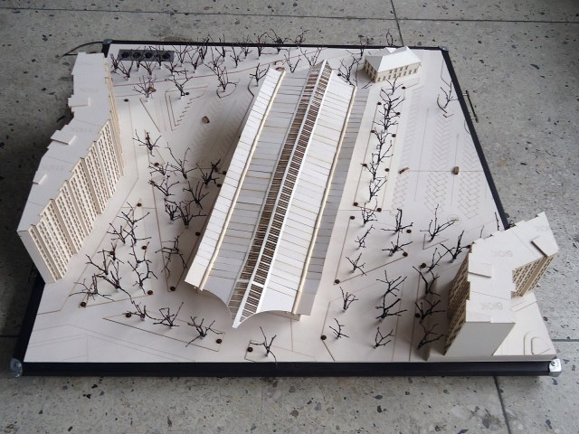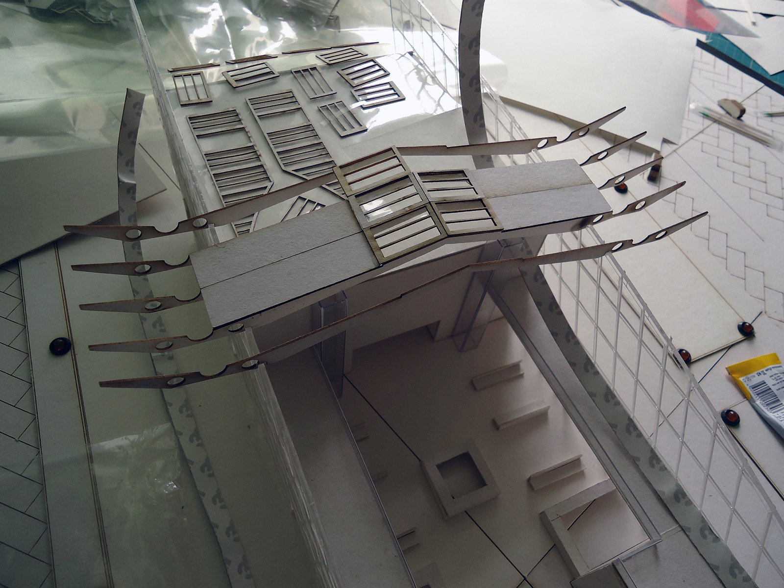Макет учебного проекта 4 курса. Масштаб 1:200. Строился с апреля по октябрь 2016 года с перерывами. Материал - пивной картон 0,9 мм, много лазерной резки, настоящие ветки деревьев, оргстекло, пленка от файлов, цветная бумага для рисования, калька, термоусадочная трубка, много проводов и светодиодов).