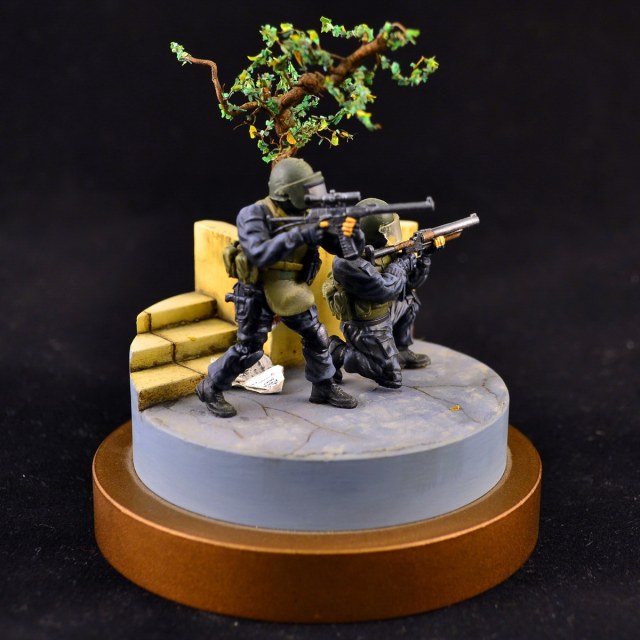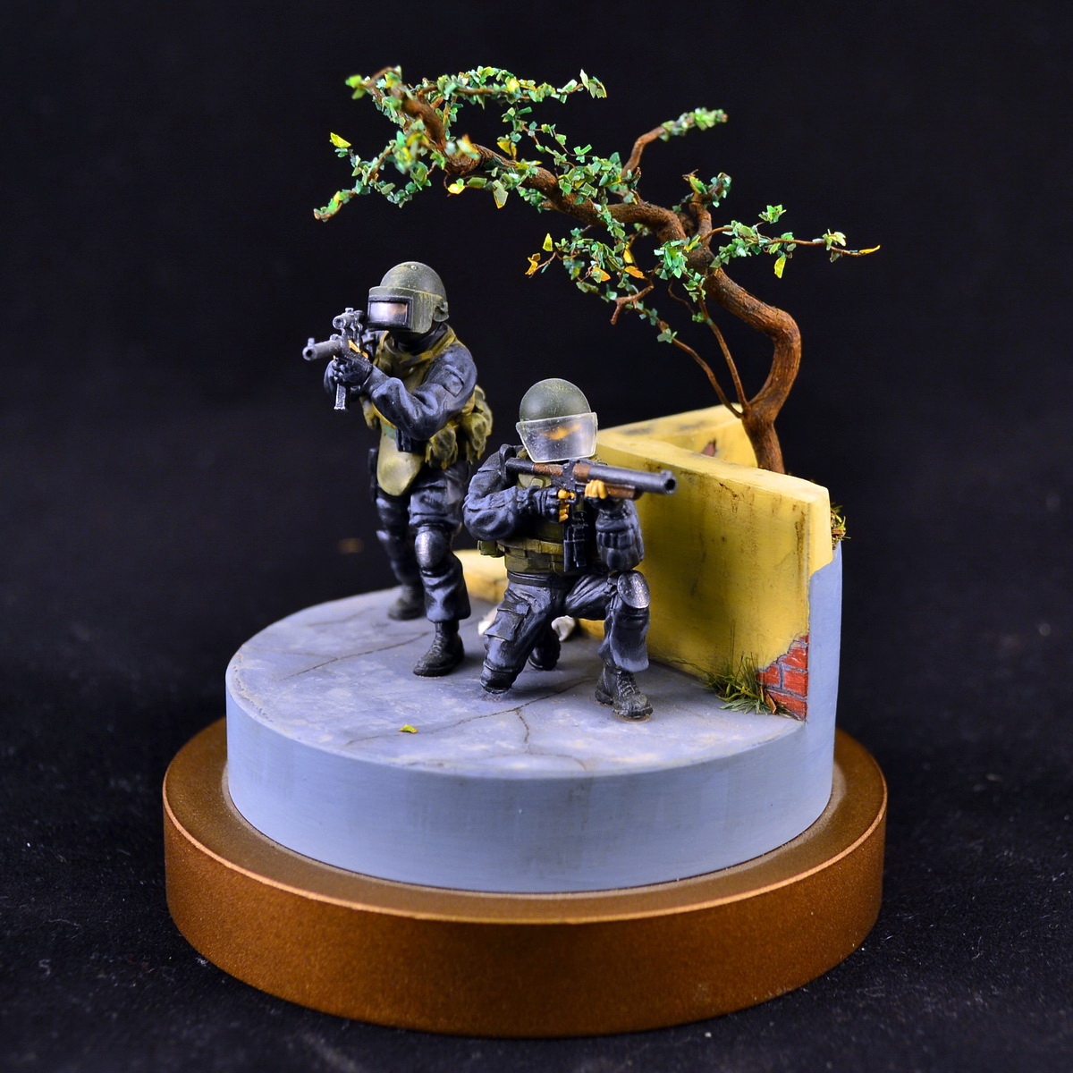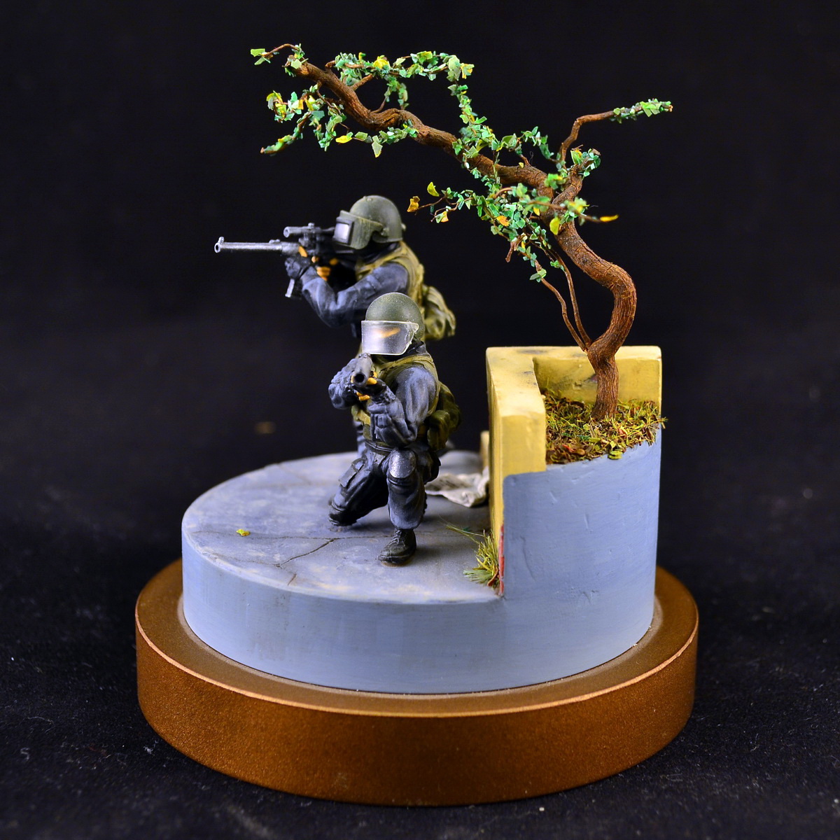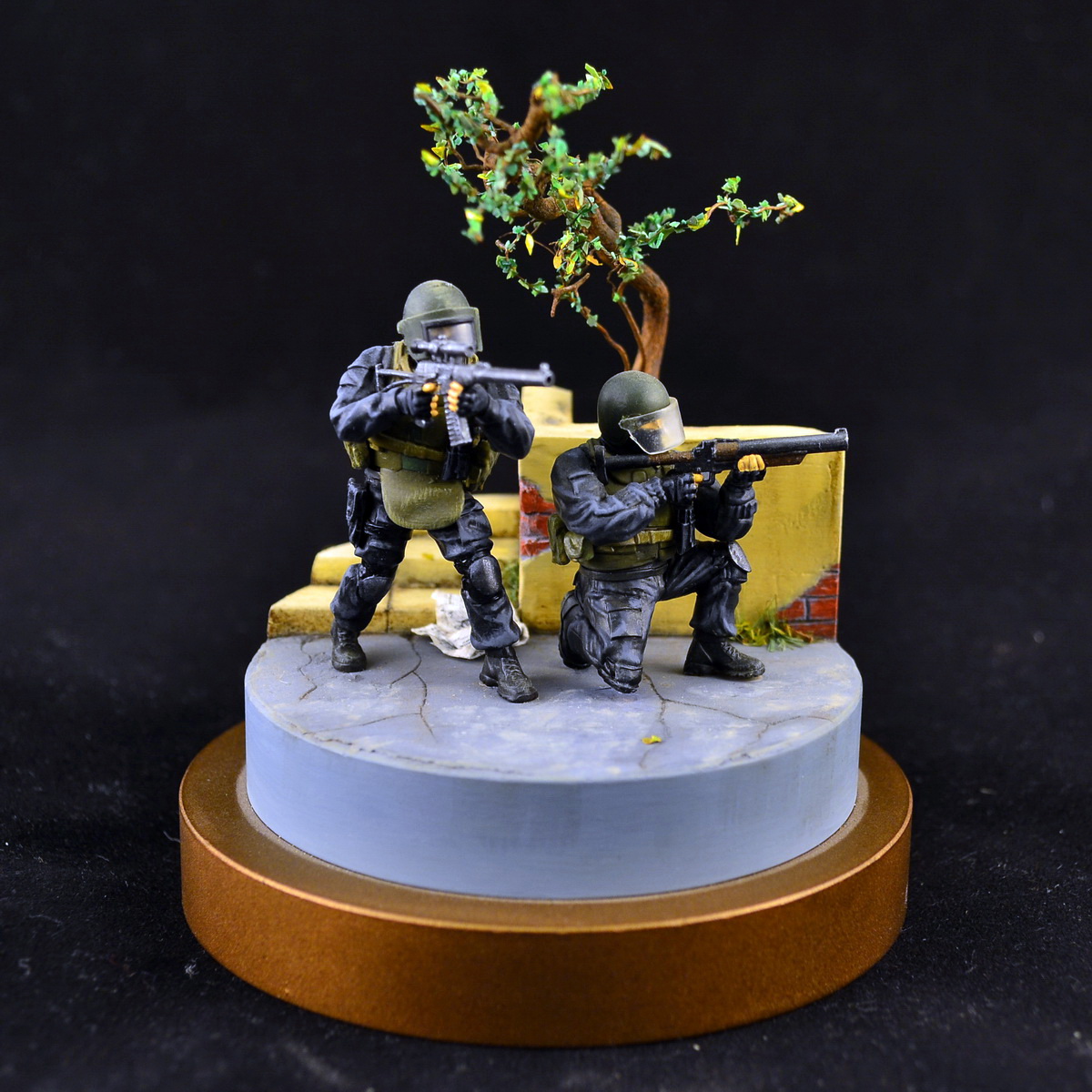 Собирал и красил без оглядки на матчать, без доработок. Это потом уже стал делать ремни к оружию и т.п. Тогда нужно было просто "вспомнить всё", получить быстрый результат и хоть какое удовлетворение от работы. Сдуру задул лаком и бронестекло на шлемах (((