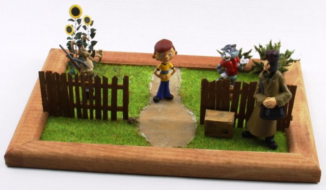 Диорамка замечательная! Но Матроскин из другой, более поздней серии. В валенках и шарфе Матроскина можно поставить рядом с Печкиным, он не особо меняется на протяжении времени. А вот Дядя Федор и Шарик с ружьем рядом с таким Матроскиным быть не могут. Матчасть однако!