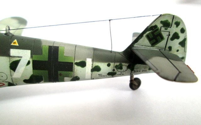 Под фотографией написан полный бред.Какой 82/83? Их было бы на черно-белом фото очень трудно отличить. А тут все четко видно: один цвет темнее, другой светлее. Цвета должны быть 74/75/76 с пятнами 70. Причем окантовка креста на фюзеляже и свастики должна быть такого же цвета, что и пятна, то есть 70, чего нет у вас на модели и близко. Вообще, в любом из двух вариантов у вас по цветам мимо, как говорил один из футбольных комментаторов: мимее не бывает. Это я про верх. По пятнам тоже меня терзают смутные сомнения: я так понимаю, вы их кистью наносили, а зря, на фото явно они порасплывчатее. Обратите внимание на заднюю стойку: на прототипе она короткая, а у вас длинная. Раскритиковался я что-то сегодня через чур. Вообще же модель производит весьма неплохое впечатление.