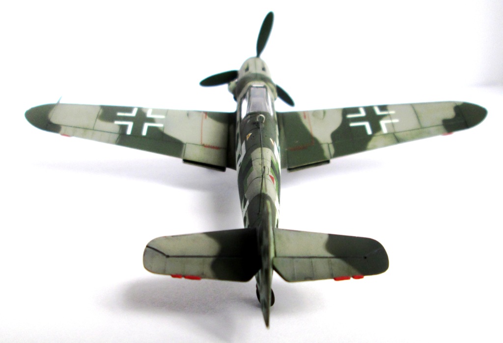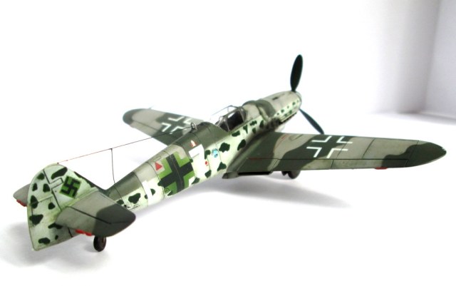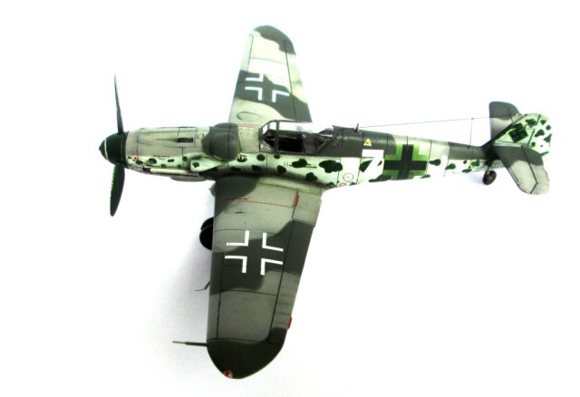Возможно, что тут "мыльница" виновата -- почти на всех фото присутствует какой-то салатовый оттенок, из-за этого и сами пятна могут выглядеть не так, как задумано. А вообще "бомберные" цвета в конце войны на немецких истребителях применялись. С уважением.
