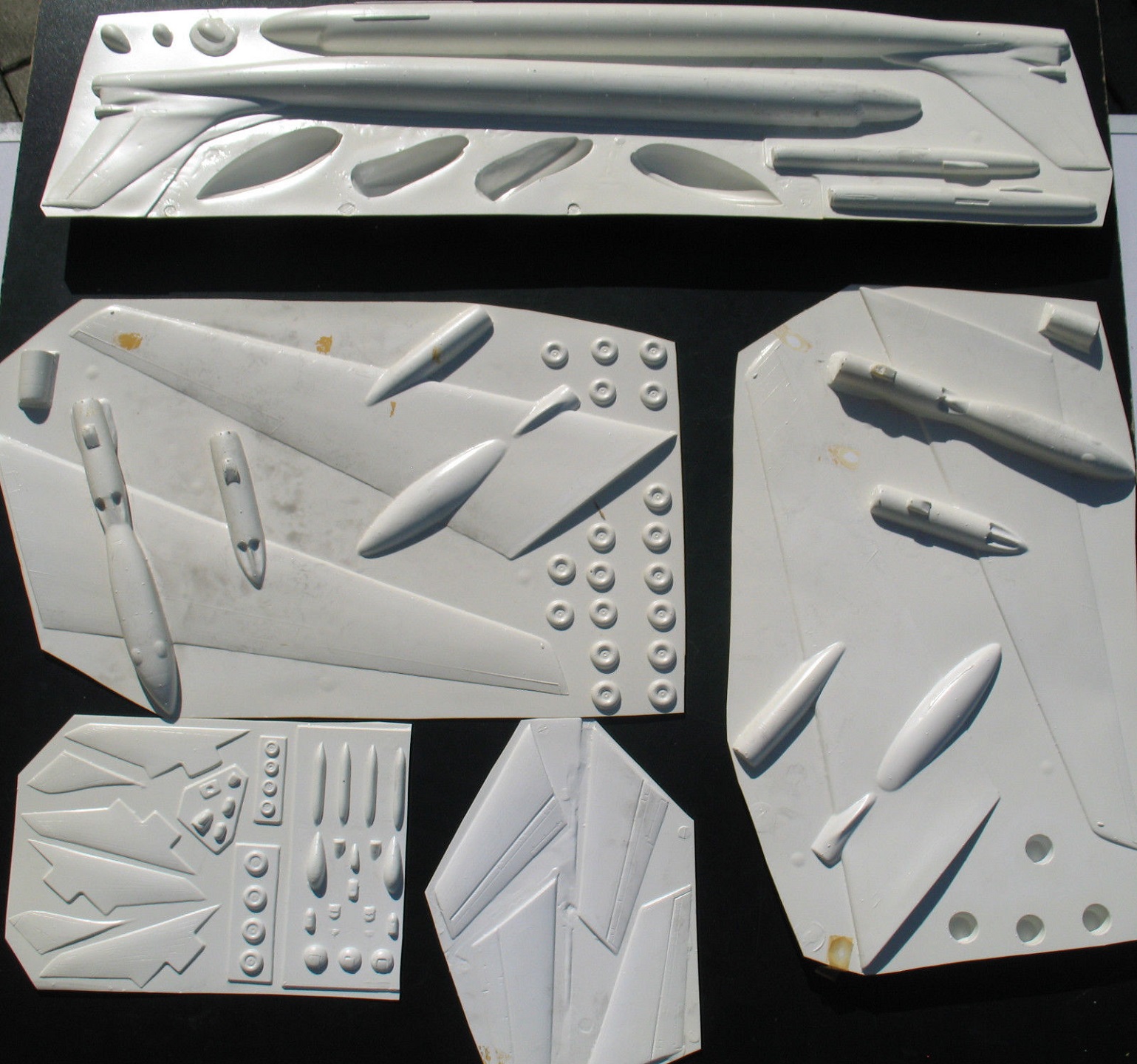 В наборе всего 103 детали. Остекление вакушное, прозрачное, без оттенка, тонкое и толстое, представлено на 2-х листах и состоит из 7 деталей. Деталей, выполненных из черного пластика всего 17 штук. Качество и детализация низкие, имеется много облоя и утяжин. Вакушных листов из белого пластика всего 7 штук(количество деталей на листах: 79 штук).