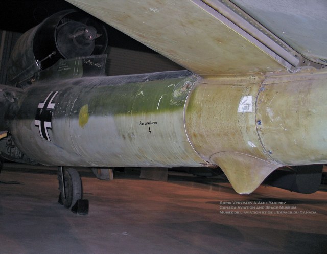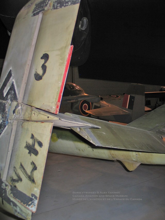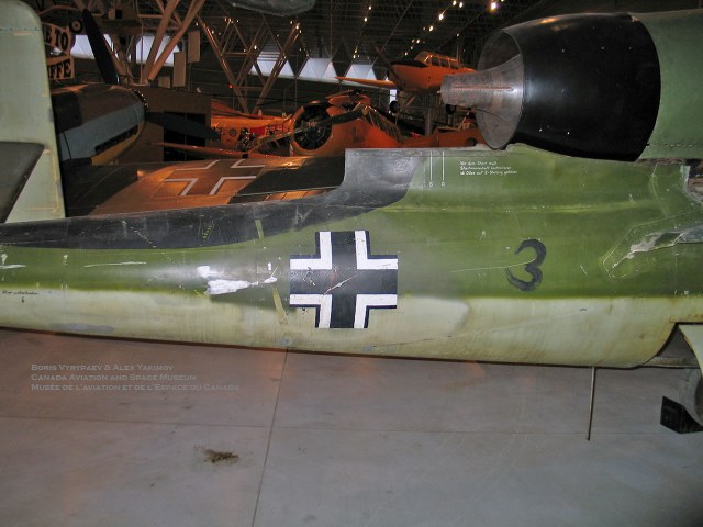 Представленнй здесь экземпляр номер 120086 (АМ62) демонстрировался в сентябре 1945 года на выставке трофеев в Гайд-парке в Лондоне. Затем его передали канадцам, и долгое время он лежал в запасниках музея в Рокклифе, т.к. в зале был выставлен другой экземпляр - 120076 (правда, экспонировался только фюзеляж, без крыла и двигателя), который десять лет назад продали немчуре и обзор которого я выкладывал уже из берлинского технического музея.