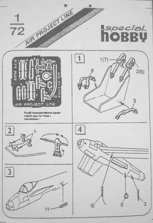 Одна из первых моделей от Special Hobby в масштабе 1/72 (номер по каталогу 72003). Картонная коробка с боковым открытием. Типичное для данной фирмы ЛНД того периода: облой, практически все детали выглядят грубовато, расшивка нечёткая. Присутствует плата с травлёными деталями. Ваку-фонарь в моём наборе пожелтел от времени. Декаль на два фантазийных варианта самолёта. Инструкция по сборке и окраске достаточно информативна и наглядна.