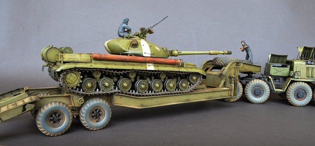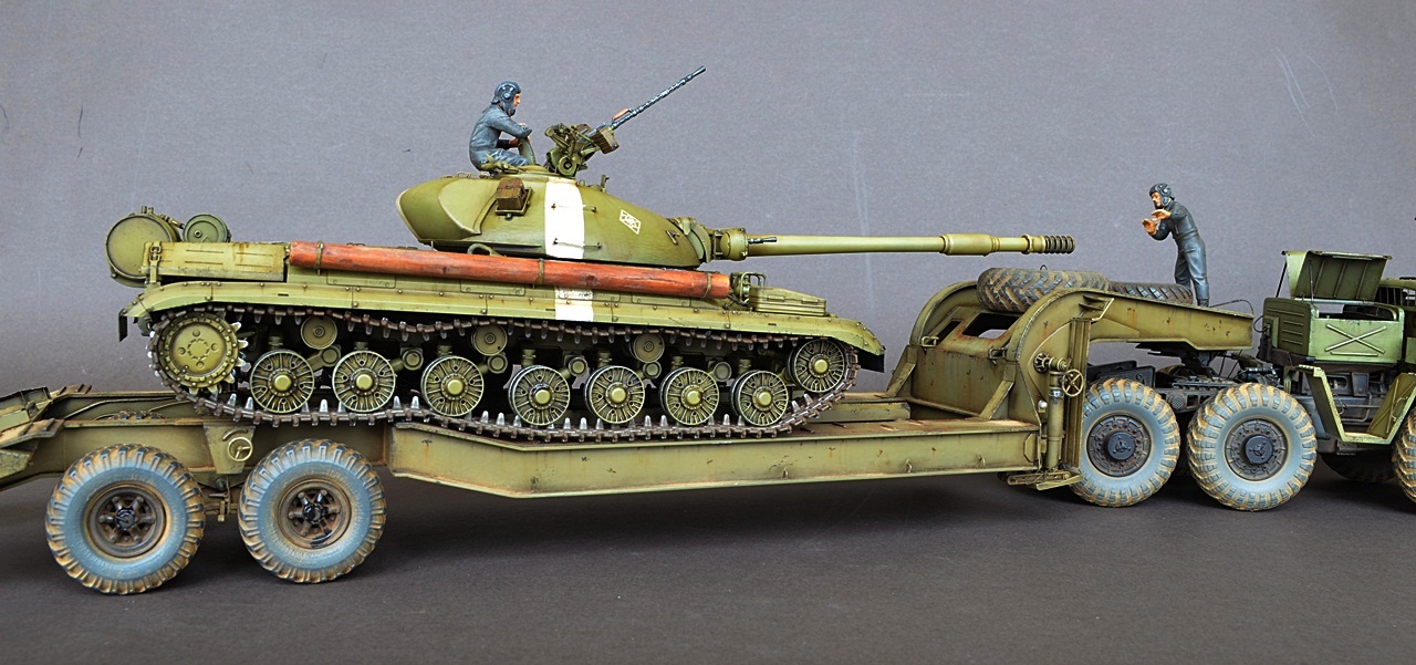 Спасибо за отзыв .Про погрузку танка-такое расположение экипажа и башни для зрелищности и Т-10 я сомневаюсь что вообще возили на этих прицепах-тяжеловат.в будущем поставлю что-нибудь полегче.