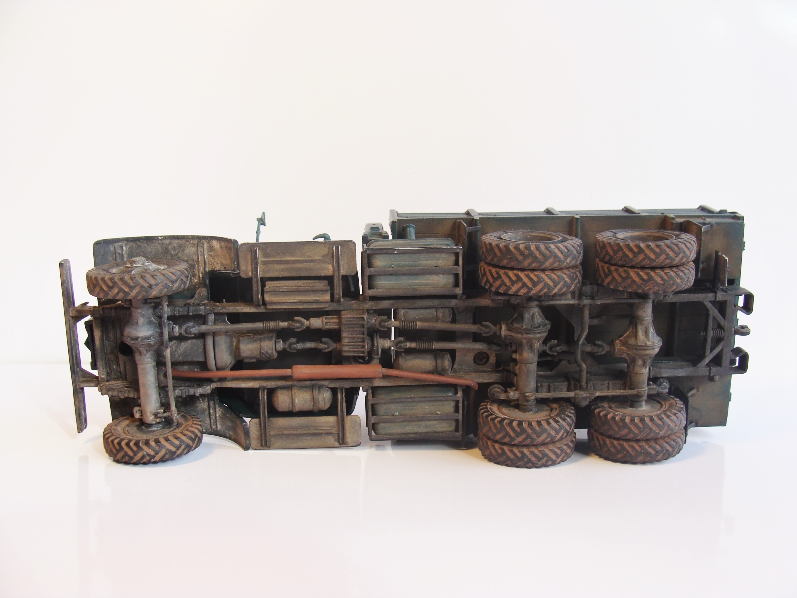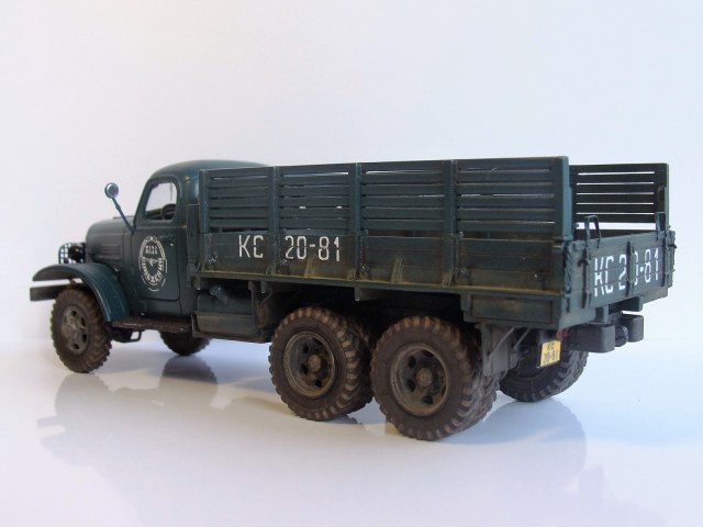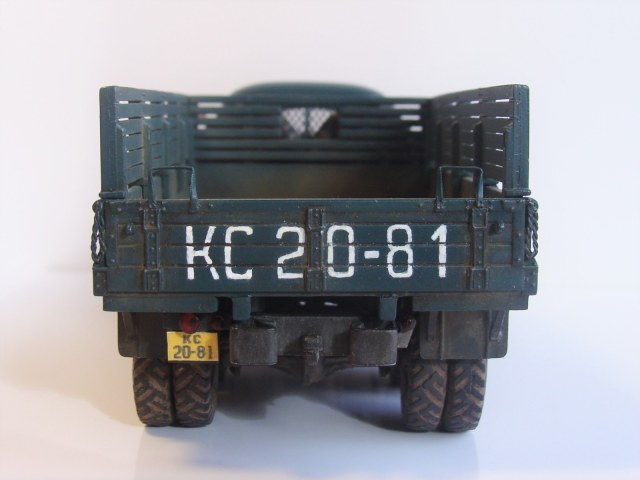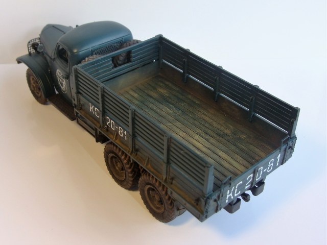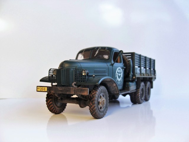 Окраска - акрил Tamiya (базовый окрас, цвет мешал на глаз), водный "Акан" (рама, мелочёвка). Грунт - акриловый автомобильный Motip. Пачкал пигментами "Wilder" и "Мастер пигмент". Расшивка выделена художественными масляными красками. Декаль на дверях кабины заимствована из набора ЗиЛ-131 от того же производителя.