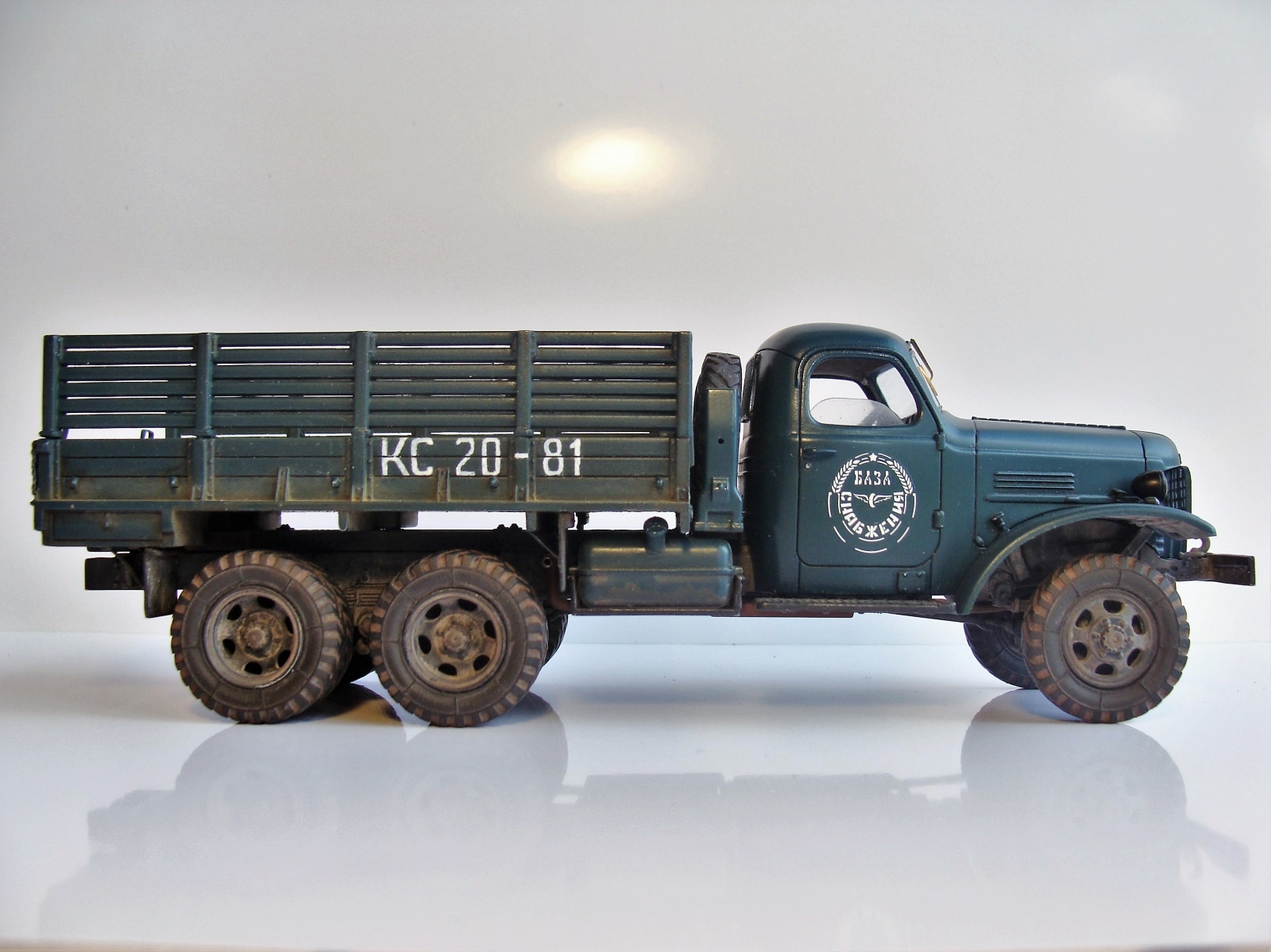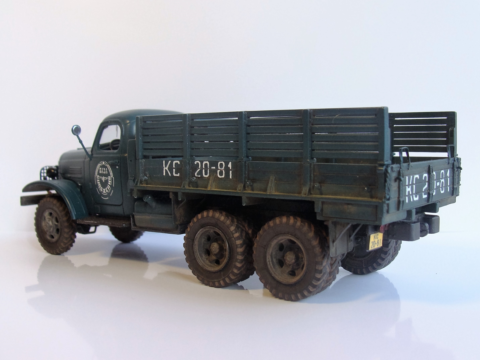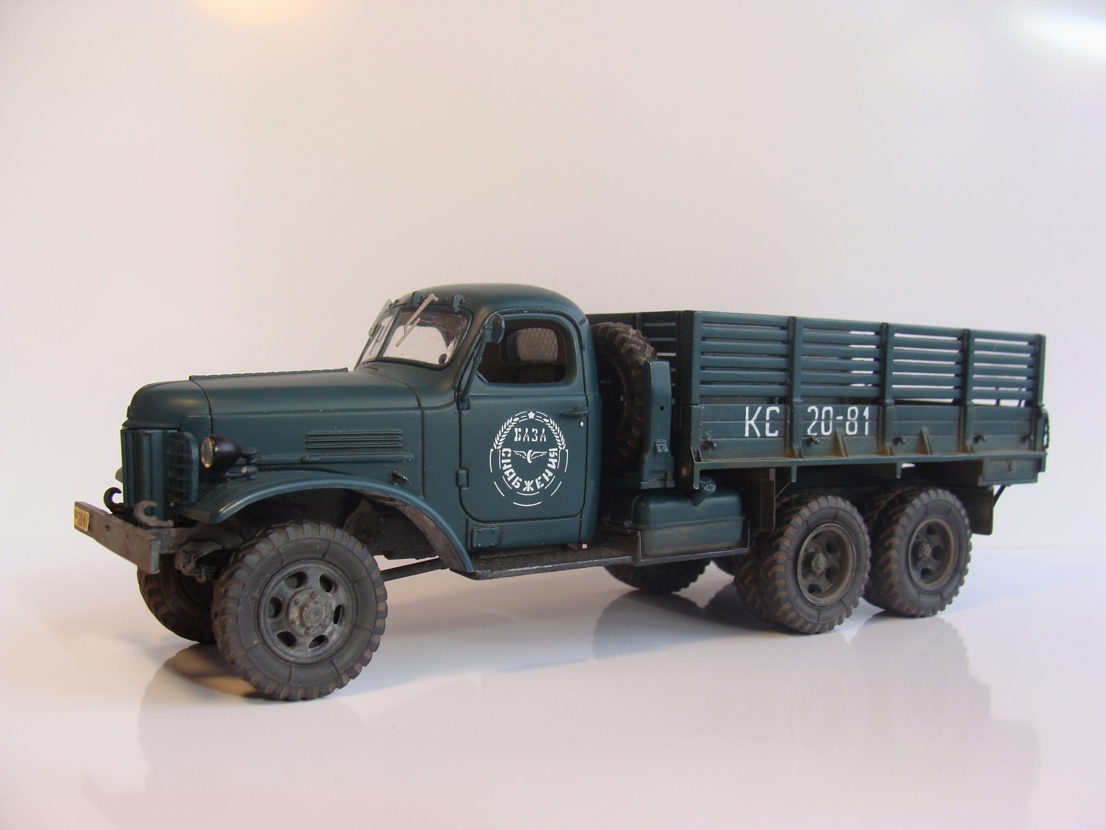 Приветствую вас, уважаемые коллеги по хобби! Представляю вам модель советского грузового автомобиля повышенной проходимости ЗиС-151. Модель от SSM (кит "Автомобиль в деталях"), собрана "из коробки", с небольшими доработками. Красить и пачкать пока лишь учусь, это моя первая работа, не считая нескольких замученных "кошек";)