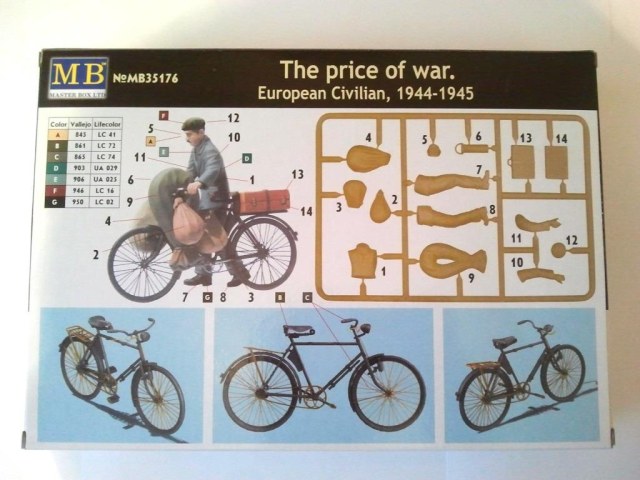 Касаемо сюжета. Производитель предлагает собрать европейского беженца с пожитками, рюкзаками и тюками навешанными на раме велосипеда.