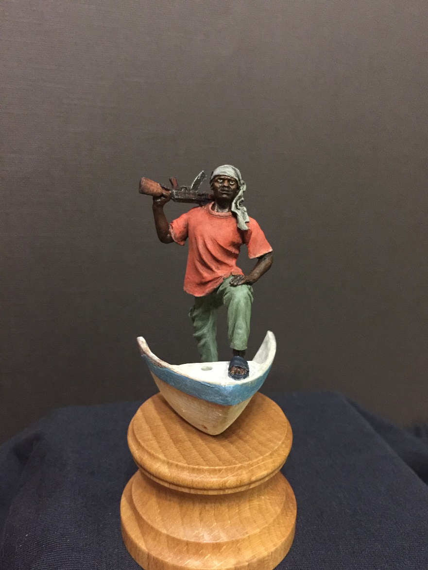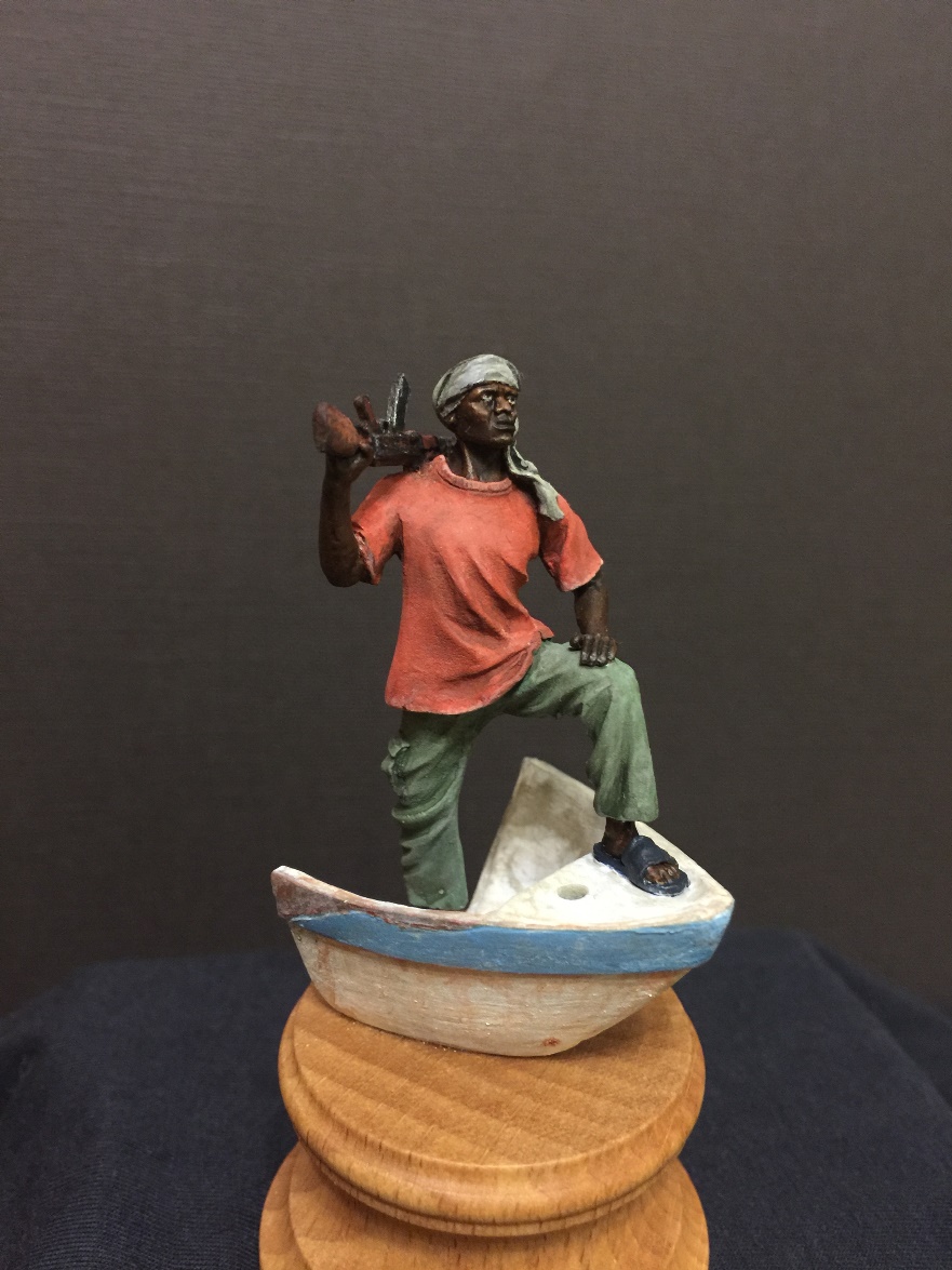По футболке Вы правы - есть ощущение шероховатости, дело в поверхности, краска лежит тонким слоем, грунт тоже, поэтому все недостатки рельефа отчетливо видны. Делать краску более густой - не решился. По штанам - не согласен, пытался создать эффект выгоревших на солнце штанов, которые не раз промокали от соленой воды. Плавные переходы, на мой взгляд, не помогли бы мне этого добиться. Возможно, конечно, что задумка не очень получилась.