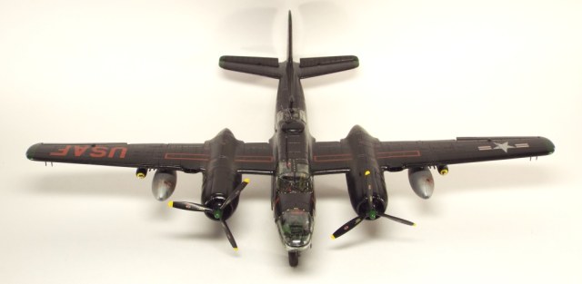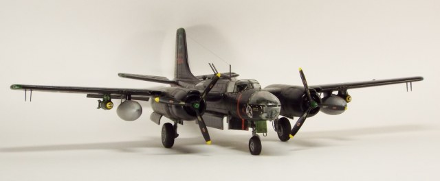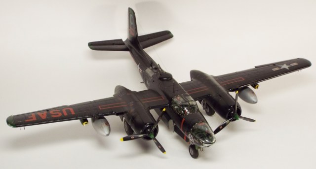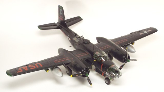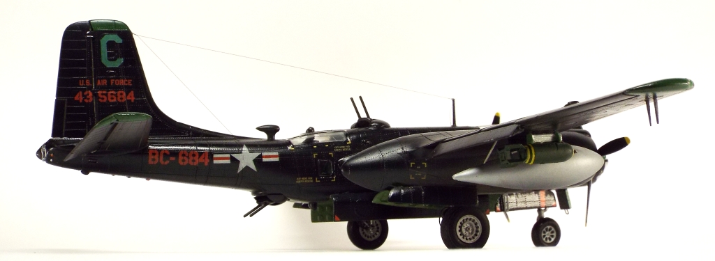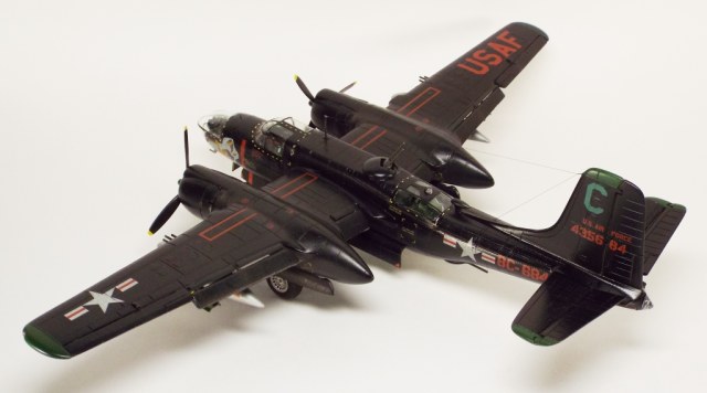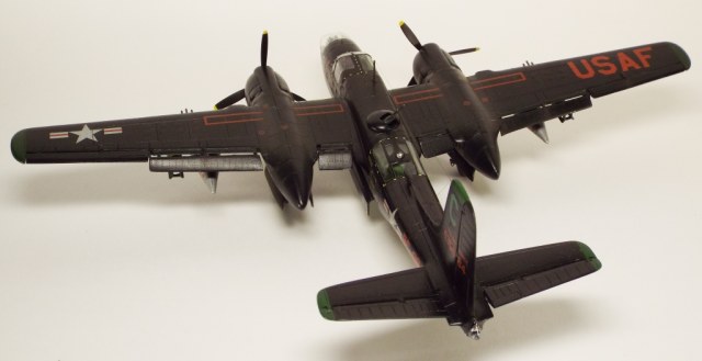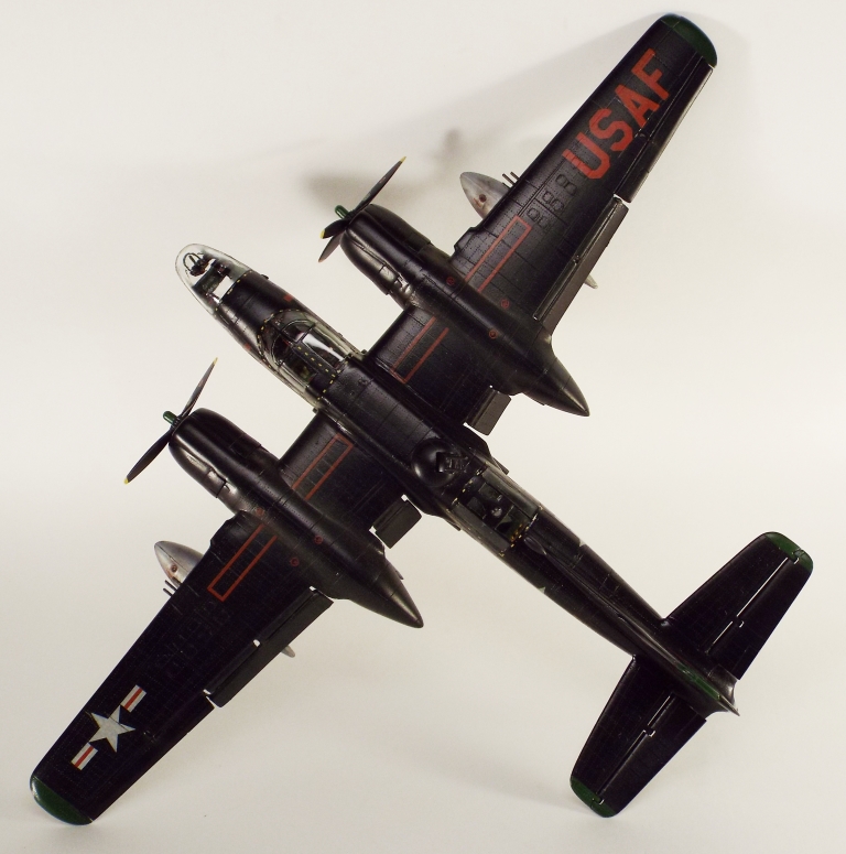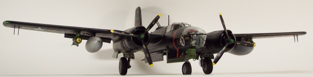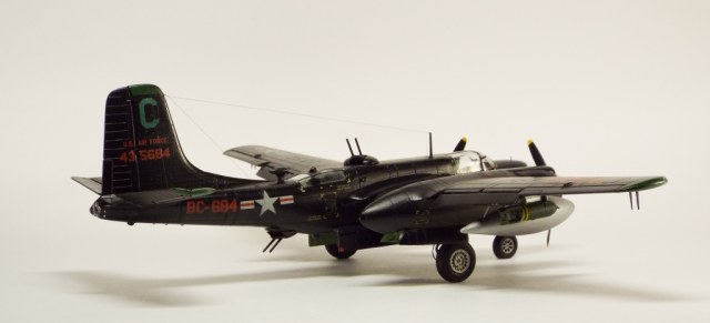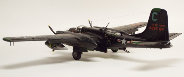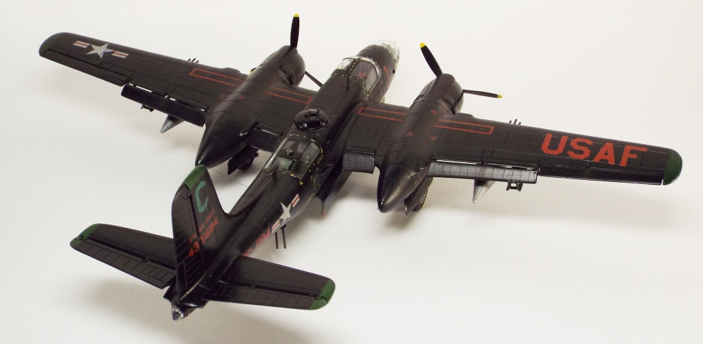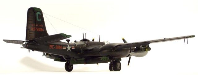 Выбран был прототип модификации «С». Малоизвестный борт A-26C-55-DL 44-35684 «Toni CII», 34-й эскадрильи 17 бомбардировочного авиакрыла .Театр действия - Корея. Декаль (подробная) к нему сделана Алексеем Бацких. Ему спасибо, много раз выручал! В общем, что получилось, то получилось. К нему в скором будущем присоединится младший брат модификации «К» от «итала». Скажу вам по секрету, с ним придётся тоже повозиться, ибо на первый взгляд модель смотрится хорошо, но… В общем, при детальном сравнении надо бы поработать чтобы модель ожила. Приятного просмотра, жду хулу и похвалу.