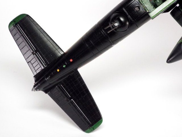 Да,она должна быть зелёной-как и кончики крыльев и киля.Это знак такой,особенный!)