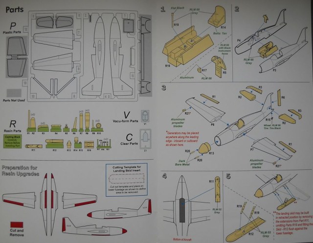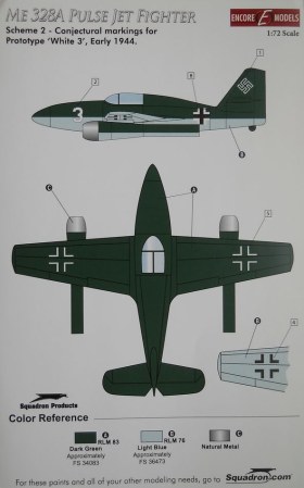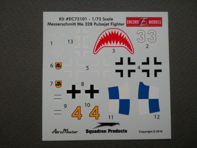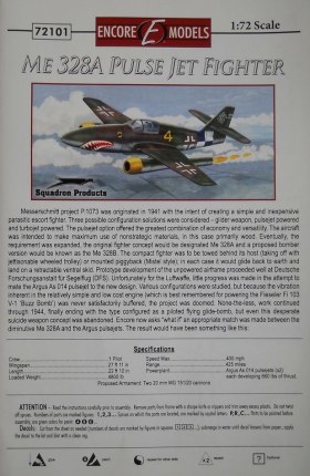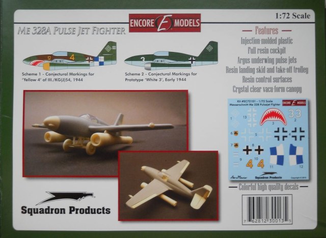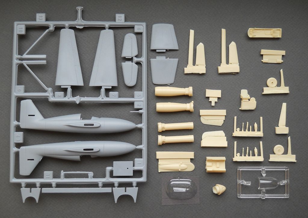 Модель от Encore Models в масштабе 1/72 (номер по каталогу 72101) упакована в картонную коробку с боковым открытием. Внутри находится пластик от фирмы PM Models доукомплектованный смоляными деталями, ваку-фонарём и декалями на два варианта.Исходный пластик от турецкой фирмы страдает некоторой шероховатостью поверхности и грубой расшивкой. Зато все детали из смолы смотрятся отлично. Хорошо проработаны двигатели, интерьер и ниша с посадочной лыжой. Цветная инструкция весьма информативна и наглядна.