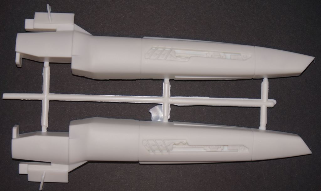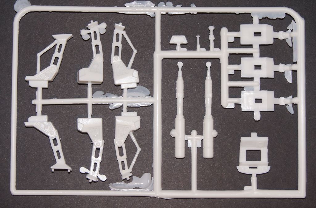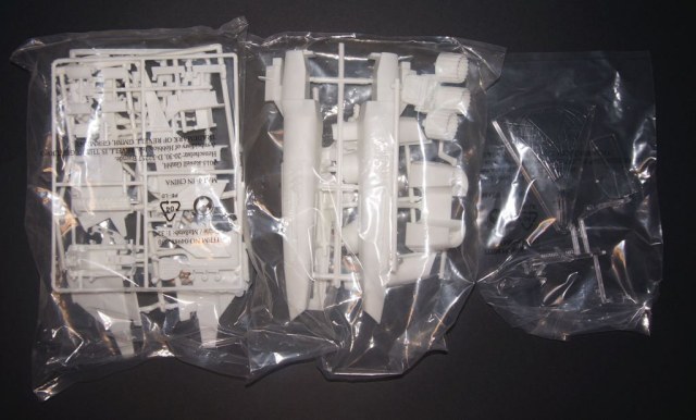 Два пакета белого пластика, и один пакет с прозрачными деталями (колпак остекления кабины пилота и прозрачная подставка).