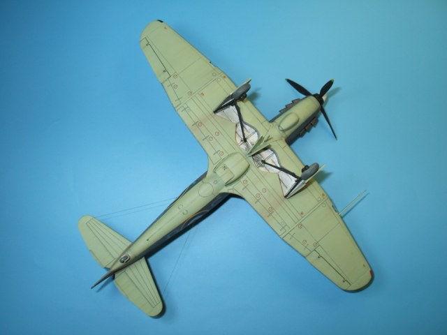 Модель собиралась на заказ «из коробки», по этому доработки производились минимальные. Наиболее значимым оказалось сточить задние кромки крыла. На мой взгляд это основная проблема данного набора. Далее были сделаны привязные ремни, посадочные фары, разсверлены пулеметные стволы, из мед игл сделано ПВД, из прозрачного пластика сделан АНО, растяжки антенны и системы «свой-чужой» - бантик.