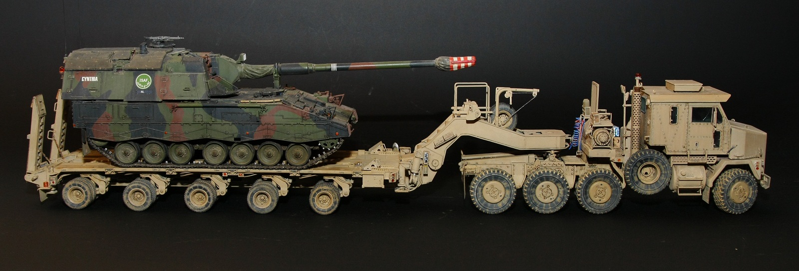 Представляю Вам свою очередную работу-модель американского седельного тягача Oshkosh М1070 с прицепом-тяжеловозом М1000 HETS.
