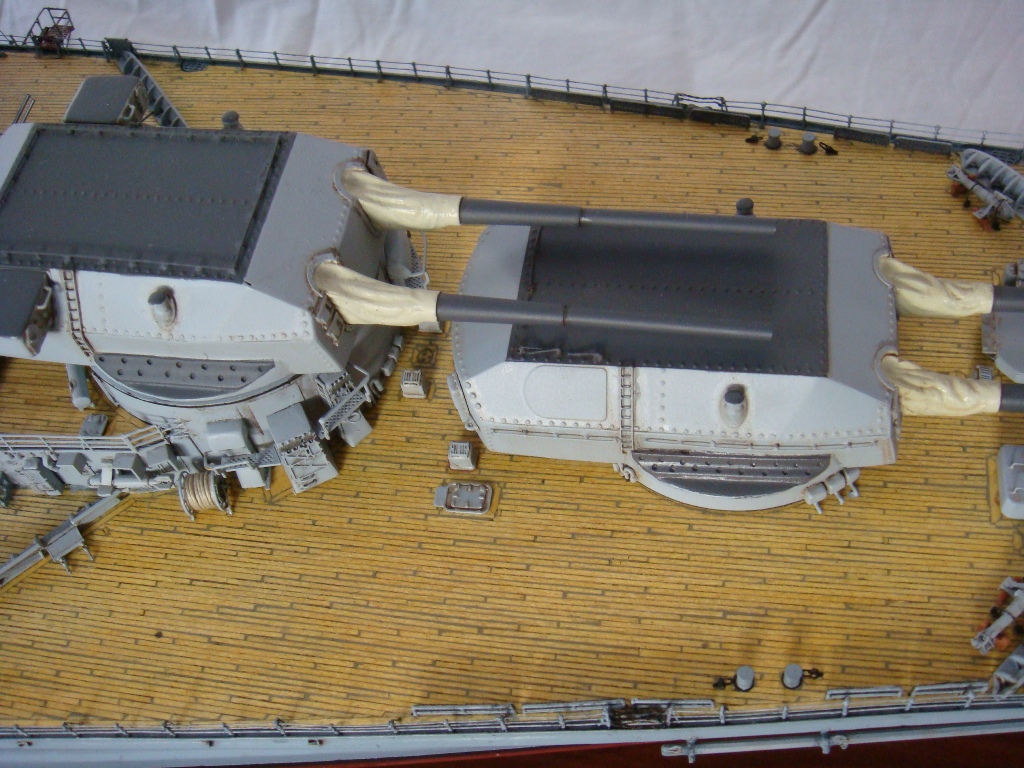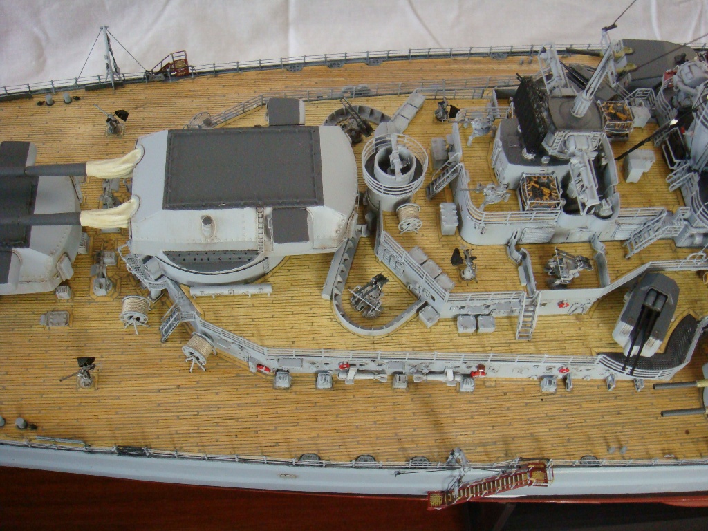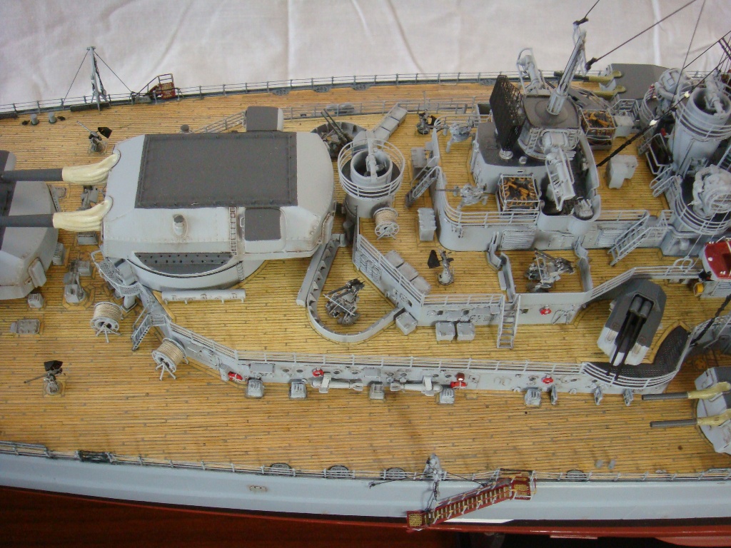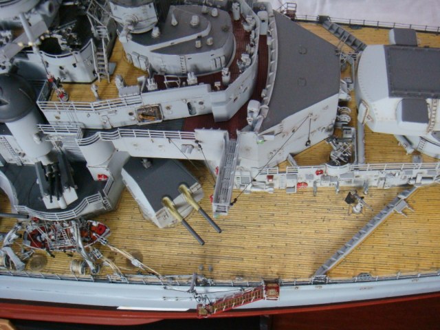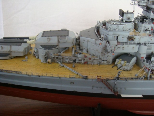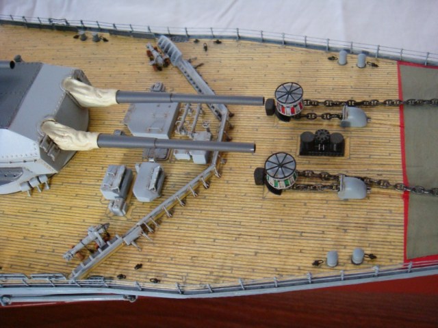 Модель получилась отличная! Много внимания уделено деталям. Особенно поразили эмблемы на флагштоках! Сам собирал такую модель три года. Мне понравилась идея "работы по частям" (part work). Каждую неделю понемногу. А через три года - линкор! Как на настоящей верфи. Свою модель изначально делал ходовой, благо издатель предложил такой вариант. Захотелось динамики, статичные стендовые модели утомили. Теперь модель в разделе "Действующих". Мои поздравления автору! Я за галерею двумя руками голосую.