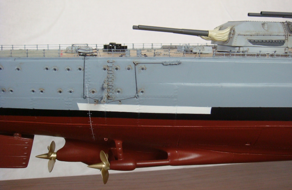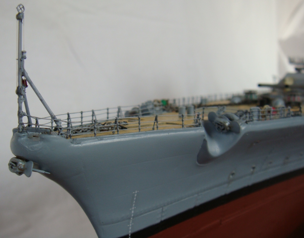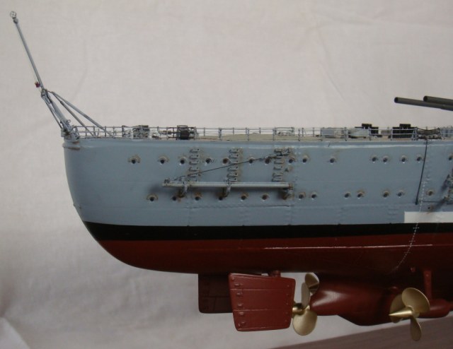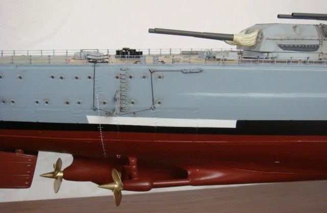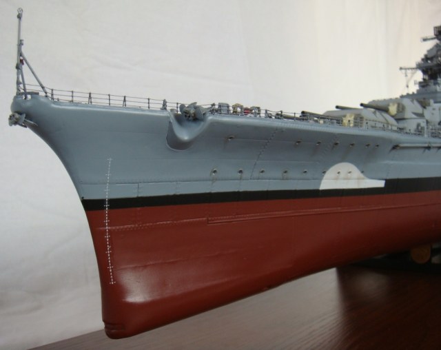 Но вот мне не очень понравился корпус,сварные стыки выглядят не очень масштабно,а местами выглядят как щели,и в местах выпуклостей под якорями ,решеток под ватер линией и броне пояс можно было бы по ровней сделать.