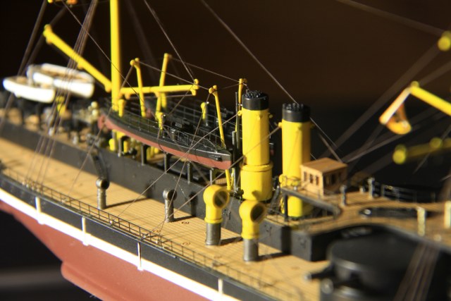 Мелкие недочёты по толщинам вент. раструбов и прожекторов, гребные винты, да и другие указанные мелочи упоминаются для будущих моделей. По толщине рангоута выскажусь осторожно. Возможно, большую роль играет ( придающий полноту) жёлтый цвет и небольшое утолщение самих пластиковых заготовок. К слову, чаще всего претензии по толщине предъявляются к жёлтым деталям, хотя выполнены они в соответствии с масштабом, зато к полноватым деталям белого цвета никаких претензий не поступает.