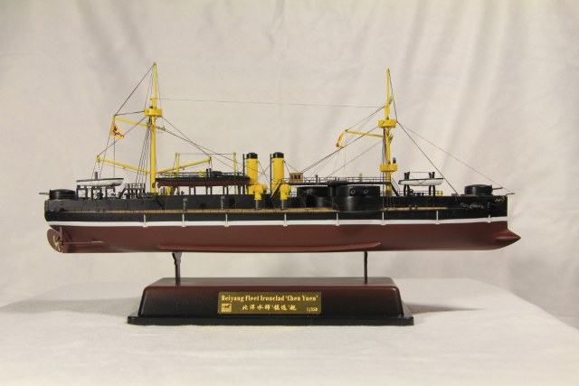 Хочу показать вам свою модель китайского броненосца Chen Yuen. Модель полностью изкоробочная. Версия 1885 года.