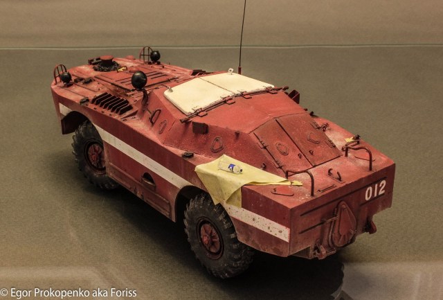 Понравилась идея и исполнение! Старая заслуженная пожарка-БРДМ, единственное, чуть бы больше затертости на верхние белые люки.