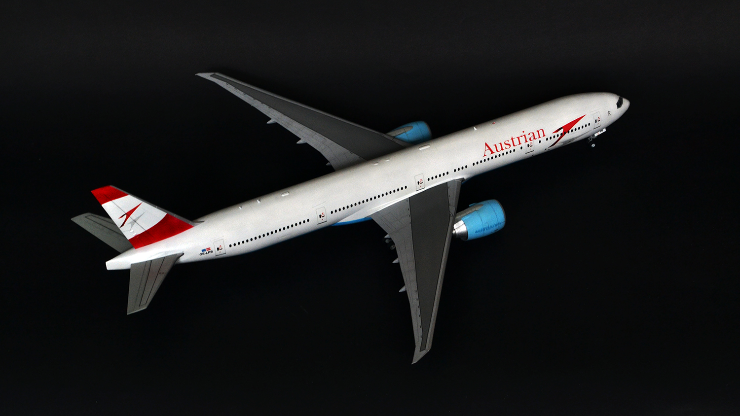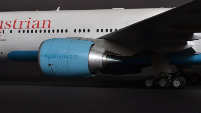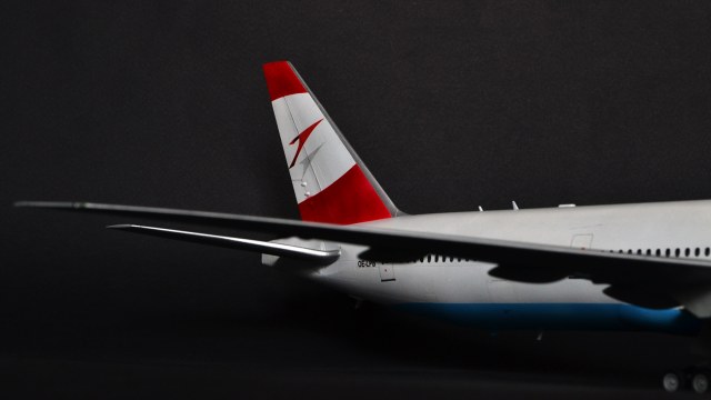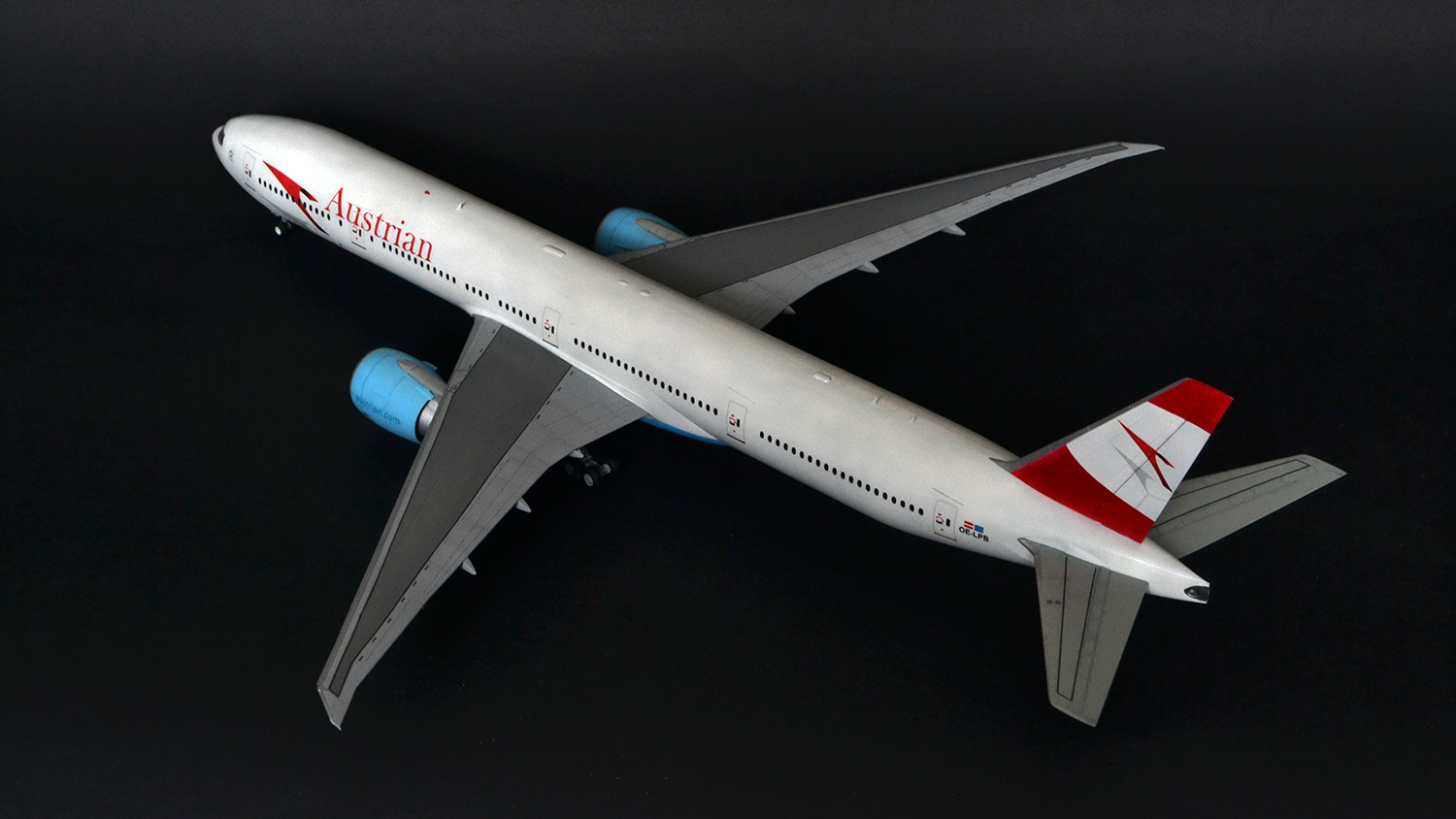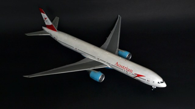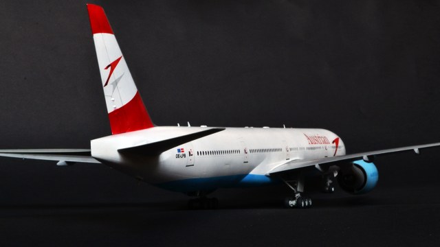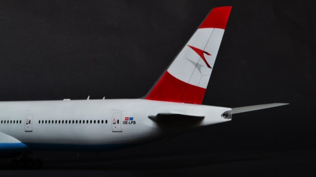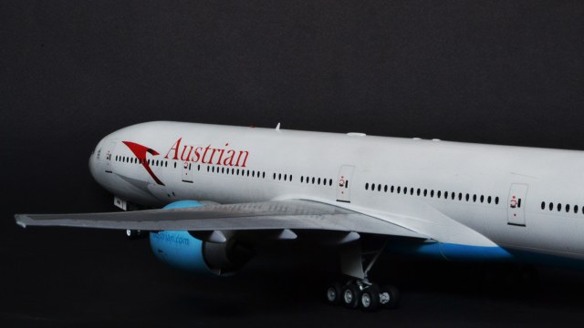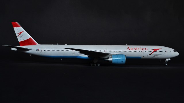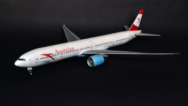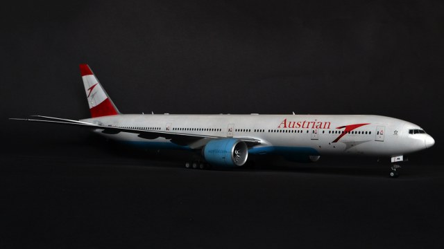 Я прекрасно знаю, что Austrian Airlines никогда не эксплуатировала 300er, а борт OE-LPB в жизни является 777-200er. Однако ж желание опробовать достаточно новый кит звезды, а также страшное НЕжелание возиться с бревнами от ВЭ или ретро-миникрафтом сделали этот выбор за меня. Поэтому реальный самолёт, в окраске реальной авиакомпаний, однако никогда не существовавший.