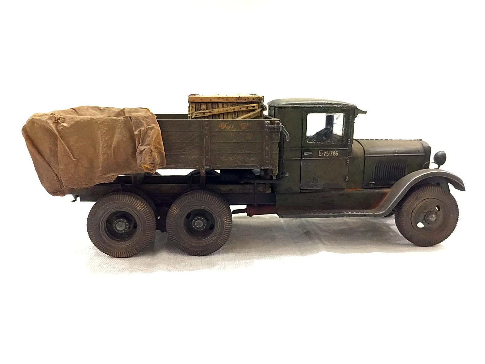 Трудовой Захар получился. Сам сейчас пытаюсь собрать такой-же, в пару к ЗИС-5, и разрываюсь между желанием просто собрать и поставить 3-х осный ЗИС-5 или все же попытаться исправить явные косяки набора и сделать более похожим на ЗИС-6. Кронштейн для запаски сами делали, или в наборе он все же есть?