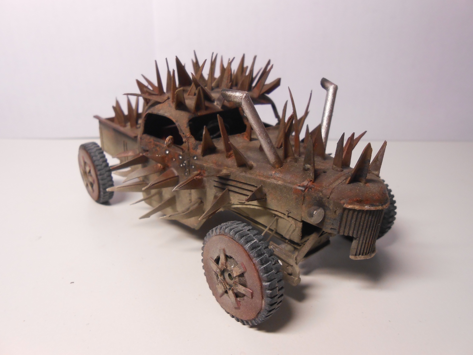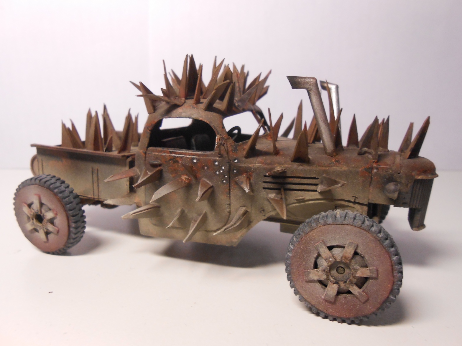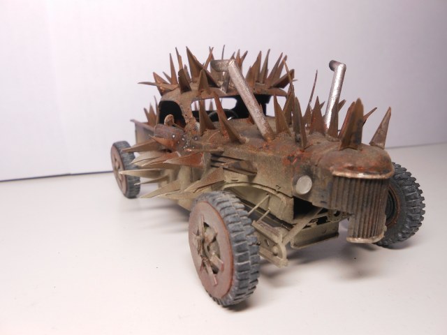За основу прототипа по сюжету создателей был взят пикап Dodge D12, на который так же очень хорошо похожа кабина ЗиС-151, которую я и взял за основу. Создать точную копию цель не стояла, так как в мире постапокалипсиса все поделки индивидуальны. Поэтому строил по максимуму похожей свою модель на прототип. Красил Тамией, ей же и запылил машину, так же использовал масляные краски.