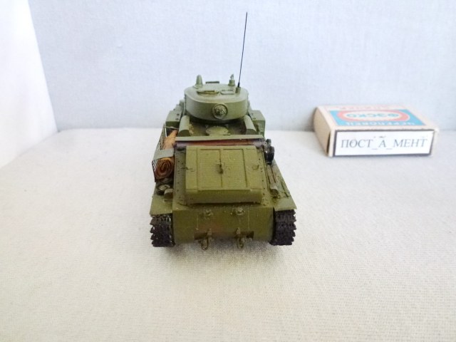 От поручневой антенны отказался, сделал сразу со штырем. Впервые столкнулся с платой травления длиной более 15 см - обжигать тяжко....также тяжело было гнуть и паять ЦЕЛЬНОдлинные гуси...тем более что инструмента у меня нема....НО две металлические линейки довершили разгром...Тяжело было очищать днище от литника, трудновато было высверливать башенные погоны...Орудие высверлил, ВСЕ пулеметы ДТ заменены на "игловые"....Ради смотрибельности на башне установил прибор наблюдения обыкновенный(Застеклил) и усиленный....шанец травленый, получился хреновый - переделывать поздно....сделал выхлопные трубами а не хвостиками, разместил брезент...фото осветлил...
