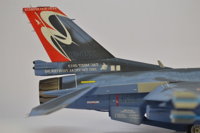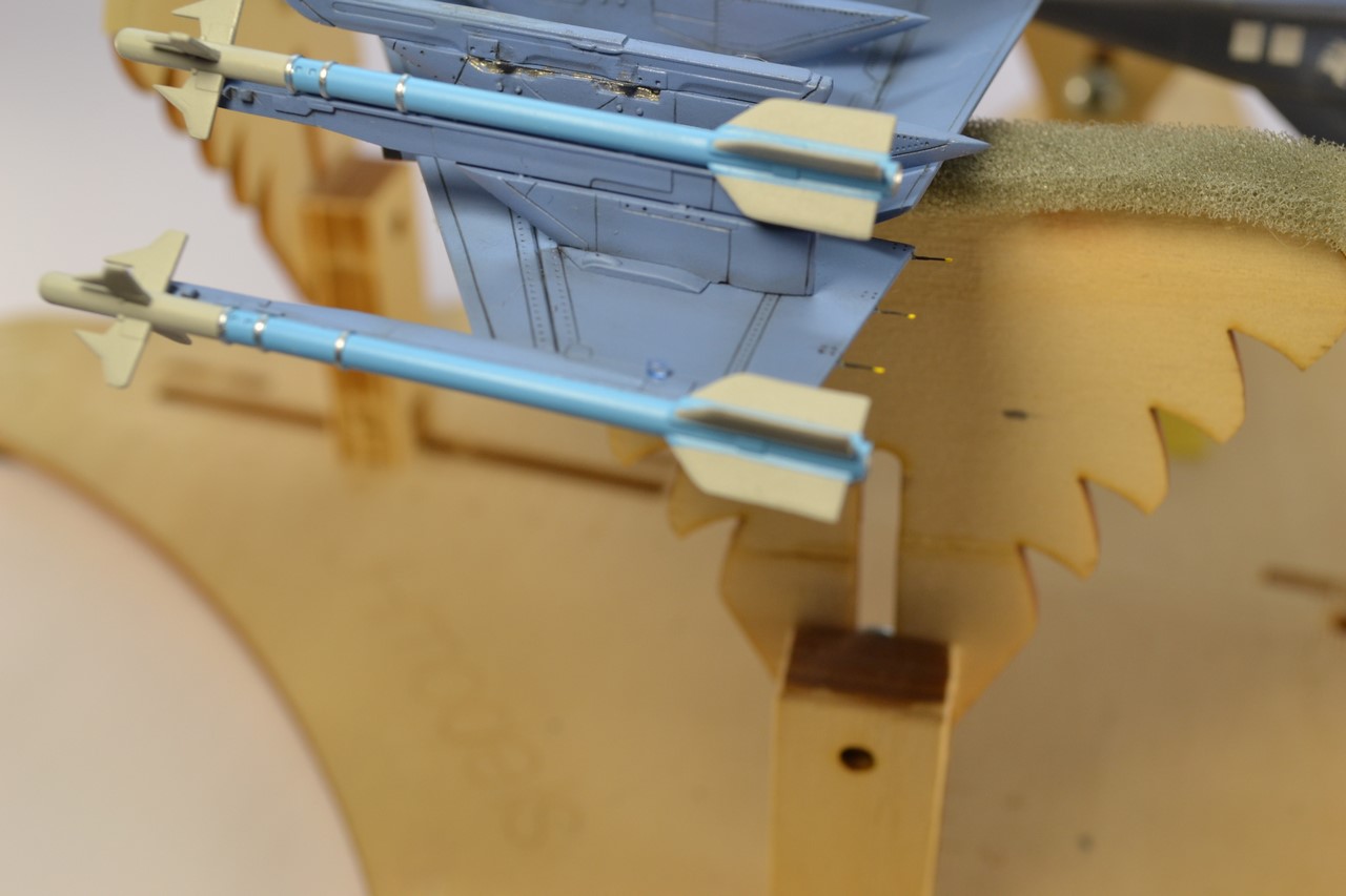 Работа отличная, но один момент зацепил - это дека, а точнее надписи на хвостовом оперении с правого борта. Это специально так написано? Ну и за ракетное вооружение словечко - на фоне общего исполнения модели сайдуиндеры выглядят очень слабо.