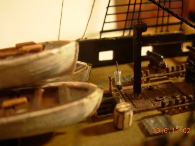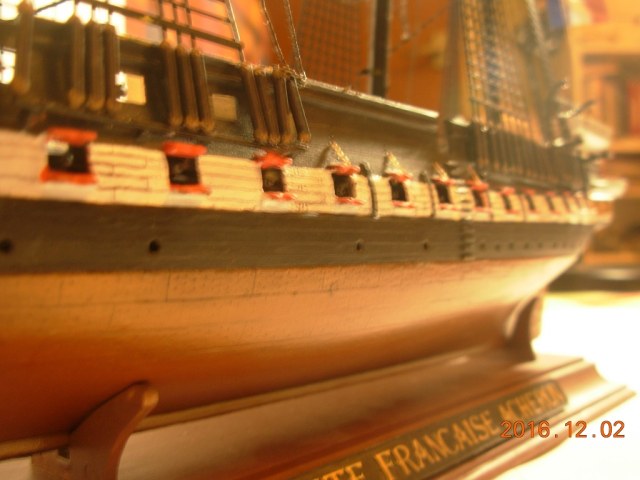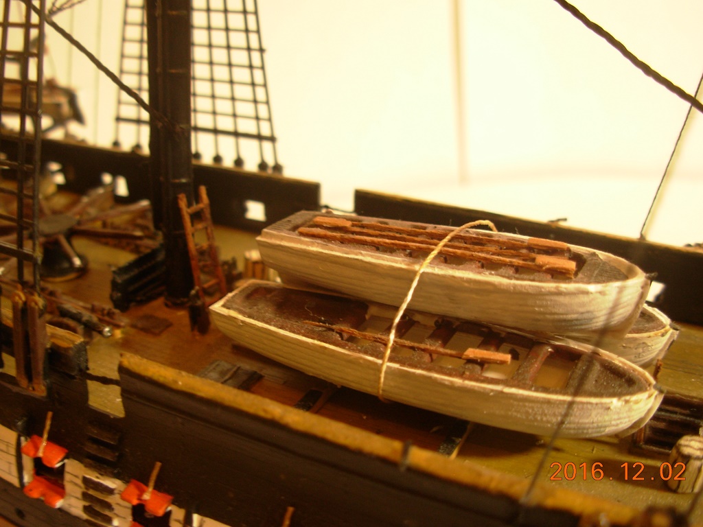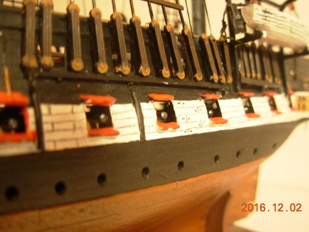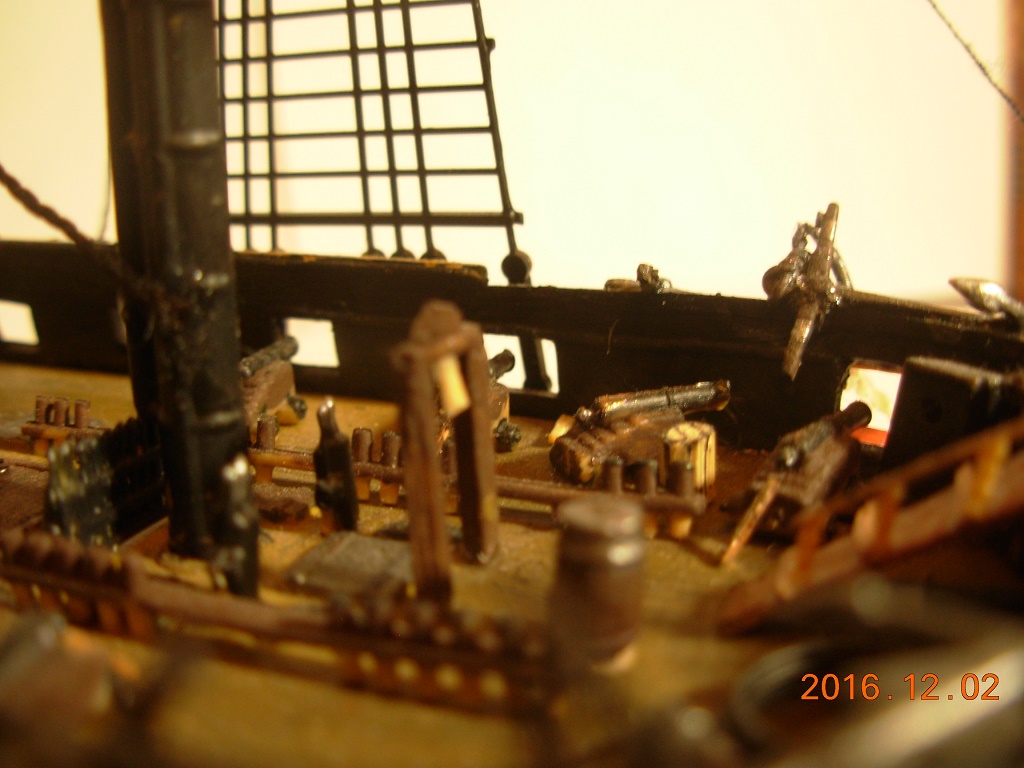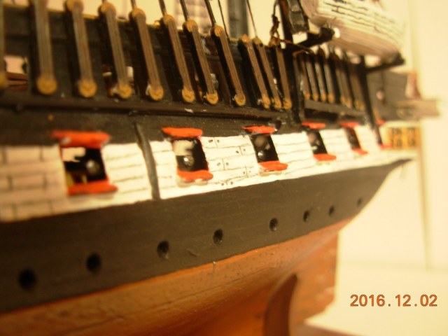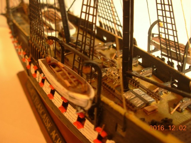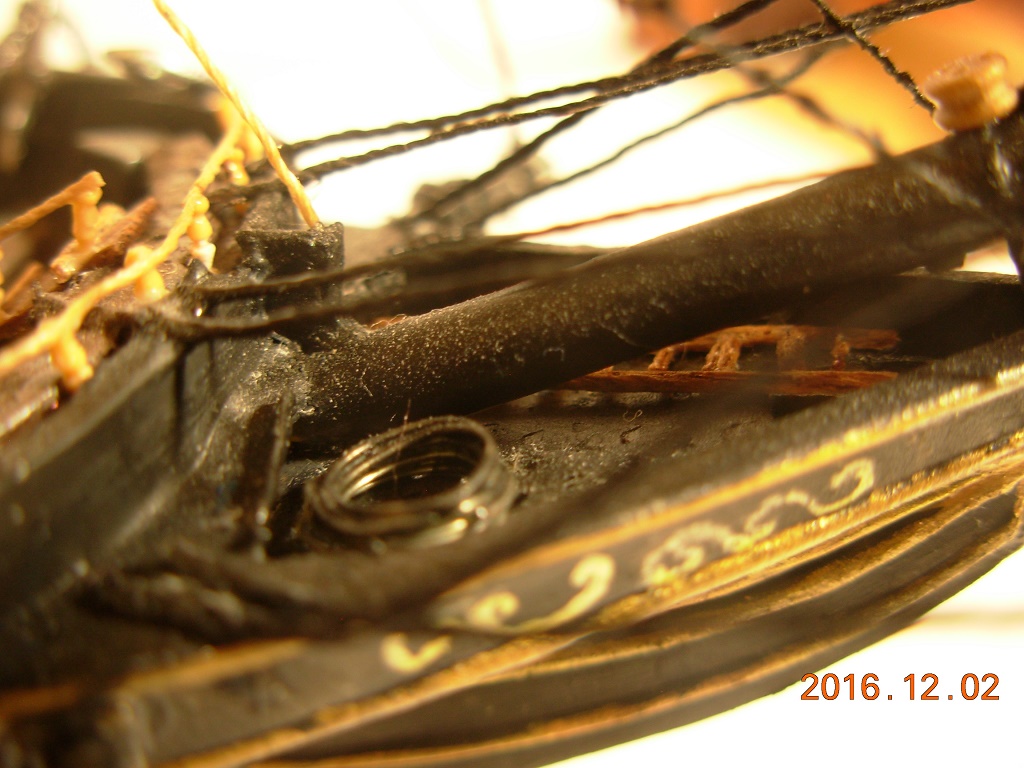 Модель меня вполне устроила за исключением нитей и ужасных пластиковых парусов. Но к началу стройки я был менее опытен, и по этому понял недостатки ниток только к середине сборки, и из за этого некоторые нити натянутые с самого начала остались висеть и портить вид.