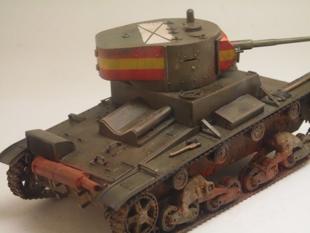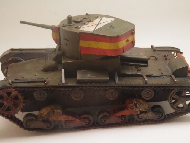 Всем доброго времени суток ! Выставляю на ваш суд модель советского легкого танка Т-26 обр.1933г.от Звезды в Испанском варианте. Захваченный франкистами в период гражданской войны в Испании. Сборка осуществлялась практически "изкаропка" с небольшими доработками,был просверлен ствол,пулемет мед.игла. Красилось все акрилом от тамии.