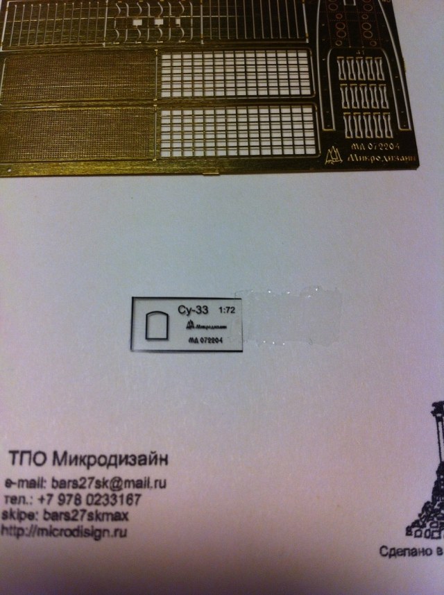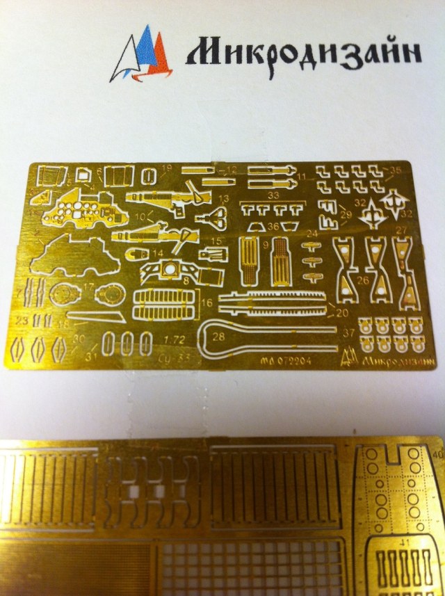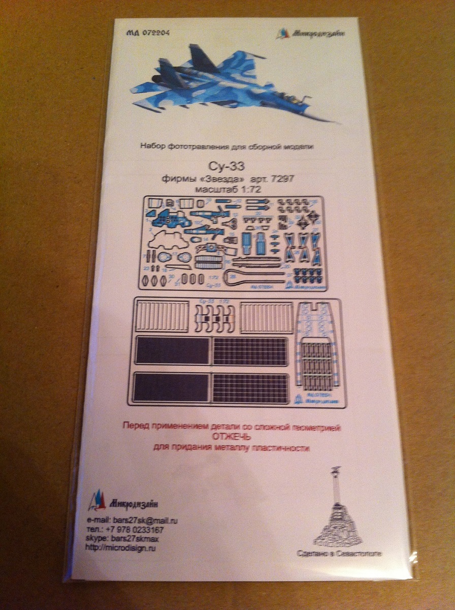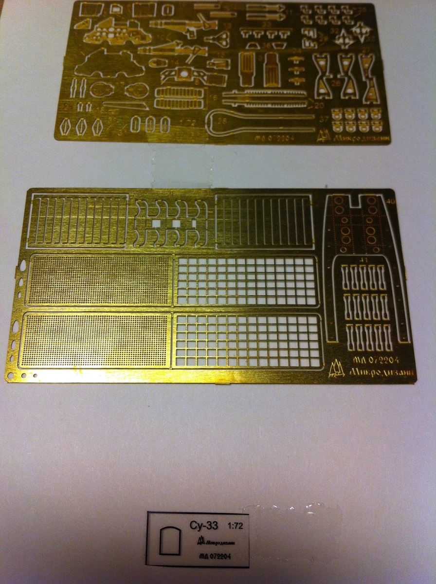 Всем добрый день. Хочу представить набор фототравления для модели Су-33 от "Звезды". В наборе дается две латунные платы, и пластиковая плата для имитации олс. На мой взгляд, качество достойное, не хуже "Эдуарда". А вот цена более чем заманчивая. Без услуг почты, я за травление заплатил 330 руб. Инструкция не идеал, но все более менее понятно. В общем я покупкой доволен. Чего и всем желаю.