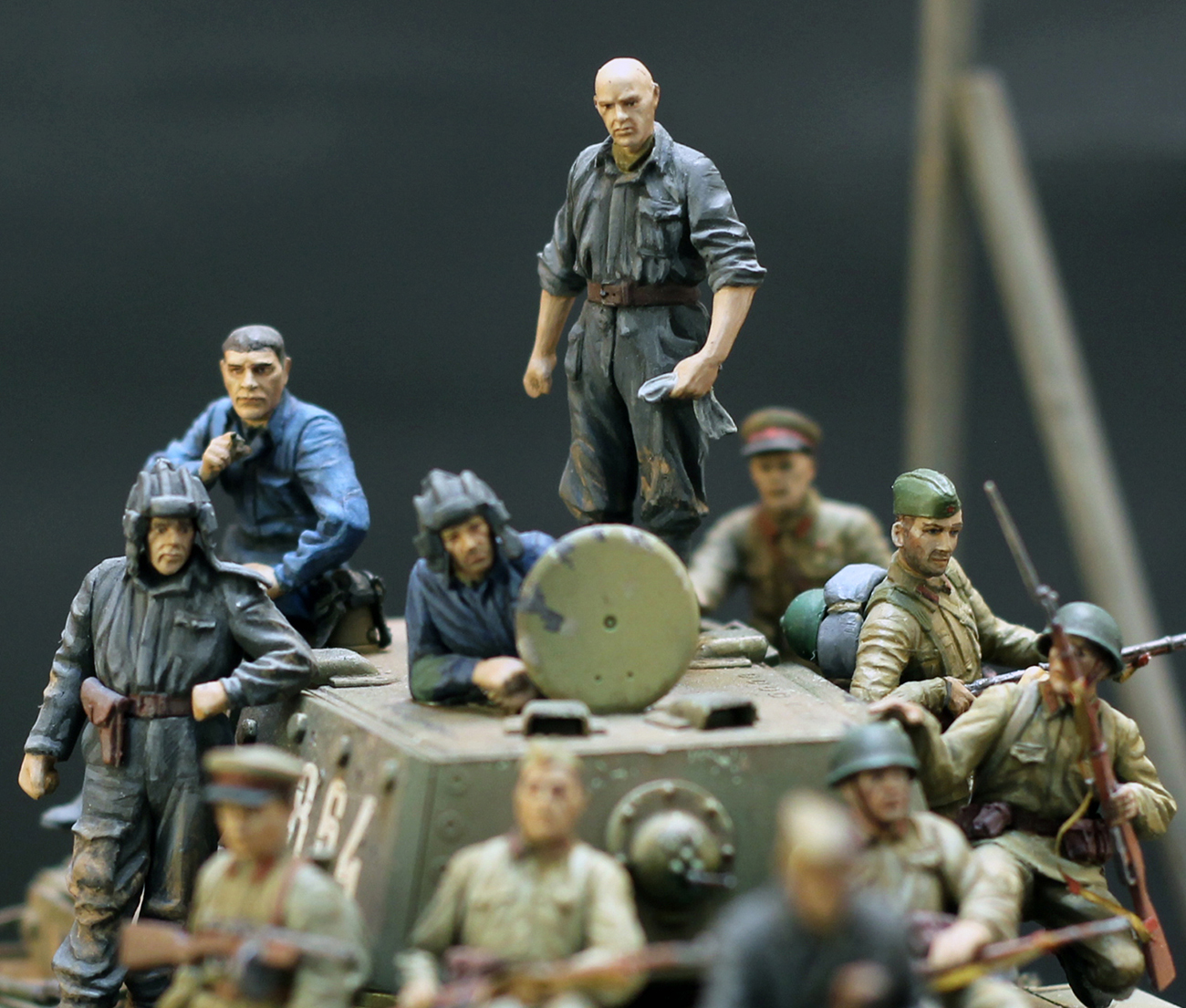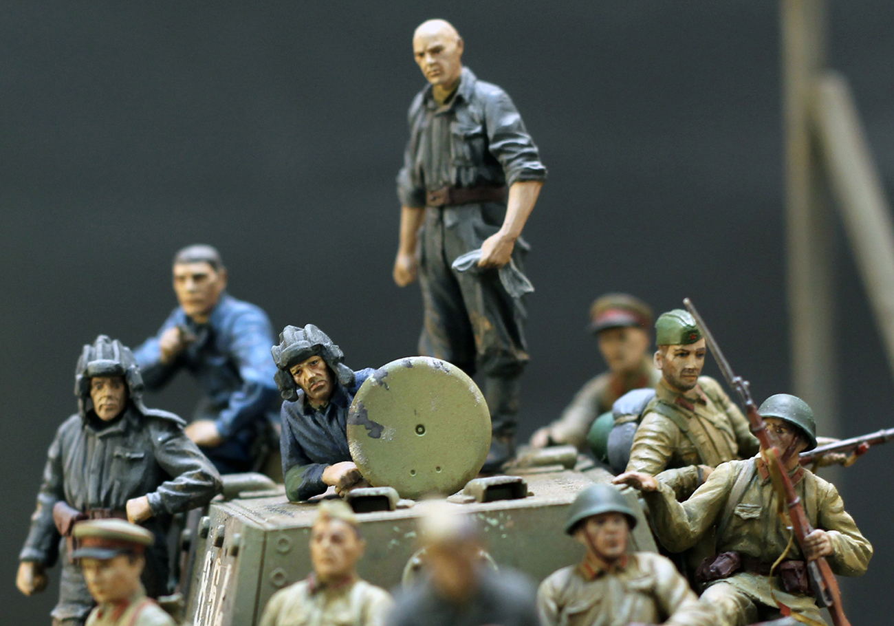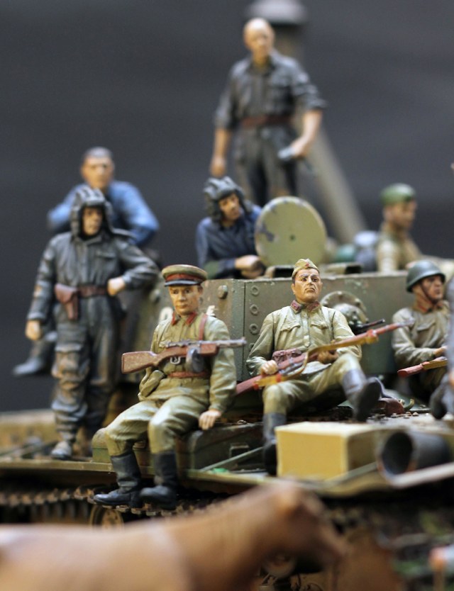 Фигуры здесь соборная солянка из разных наборов фирм МВ, MiniArt, ICM и Tamiya. Фигуры красились по методу мокрой палитры акрилами разных фирм.