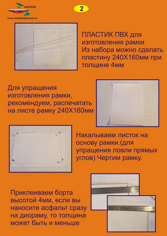 Набор для самостоятельной закатки асфальта 22-306, изготовлен Барнаульским клубом Пластмастер. Предназначен для имитации асфальта. В зависимости от уровня давления при укатки возможно добиться покрытия даже под 144 масштаб. Большие масштабы тем более. Набор состоит из банки (которая идет как емкость для замеса), сухой смеси, флаконов с акриловой смолой и инструкции (которую необходимо просто изучить и соблюдать). Набор позволяет закатать плитку размером 240Х160 мм, с толщиной 4 мм. Можно и произвольный размер, главное уложиться в рекомендованную площадь. После полного высыхания, возможно нанести дорожную разметку, не грех пройтись пигментами. Главное не показывать вашим городским властям. Иначе замучают заказами.