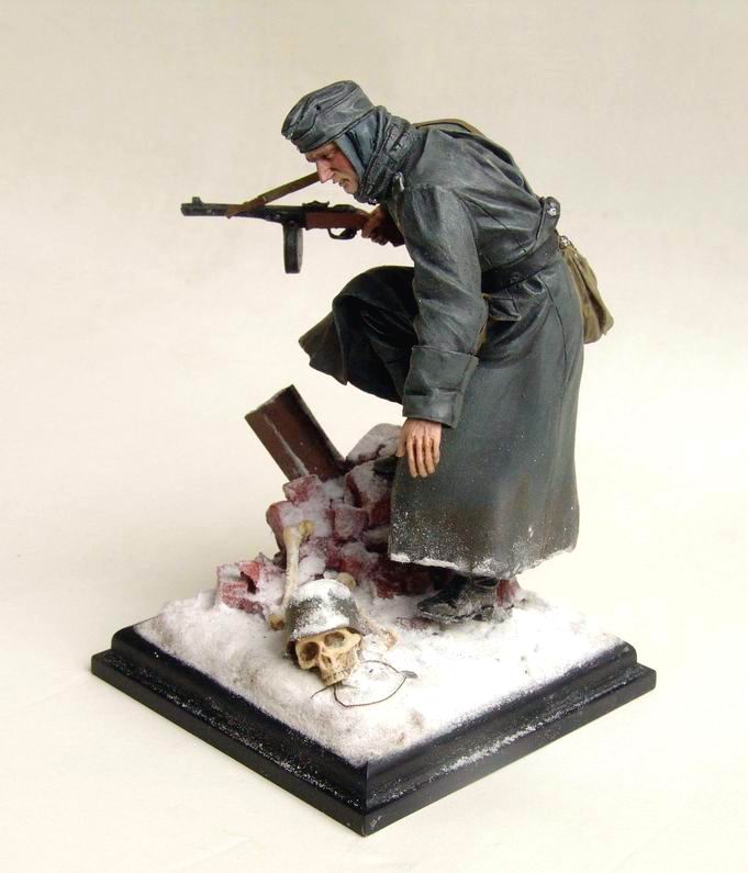 Вначале ноги, внутри шинели, сапоги, потом собрал и уже по месту доводил покраску, как то так.