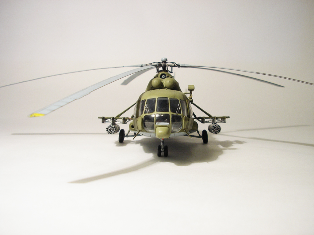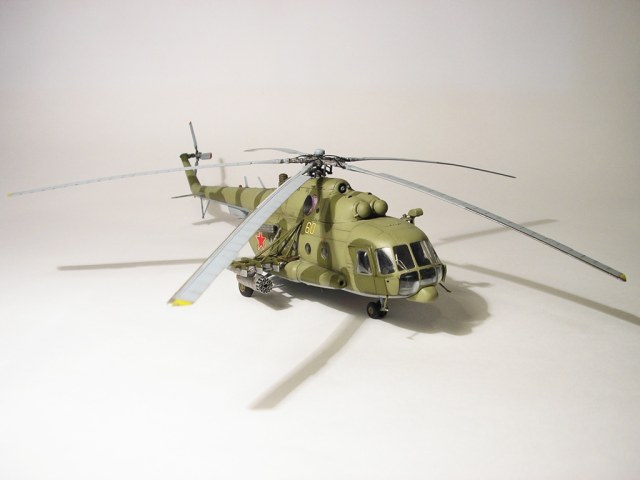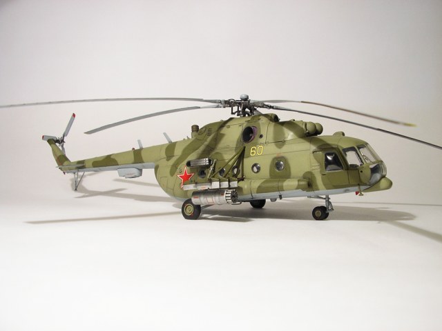 Приветствую))) За основу взята модель Ми-8МТ от HobbyBoss, которая, на данный момент, является наиболее похожей на оригинал. Модель делалась с доработками и использованием деталей из других наборов. Подробно рассказывать о постройке не буду, все есть здесь : http://karopka.ru/forum/forum187/topic7353/message1099474/#message1099474