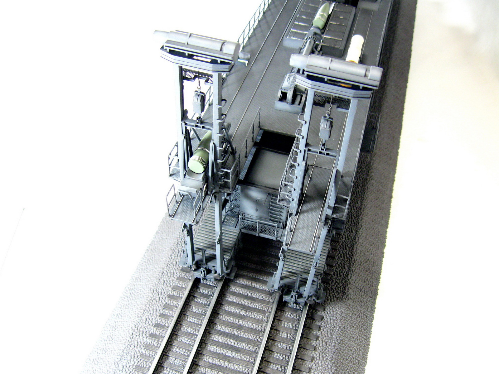 Окраска акрилом тамии и ганзы. На саму пушку ушло три банки краски, на полотно полторы. Полотно задул ганзовским серым с добавлением немного коричневого и сверху прошёлся светло серым методом сухой кисти. На шпалы нанёс тамийскую чёрную смывку не стирая излишки.