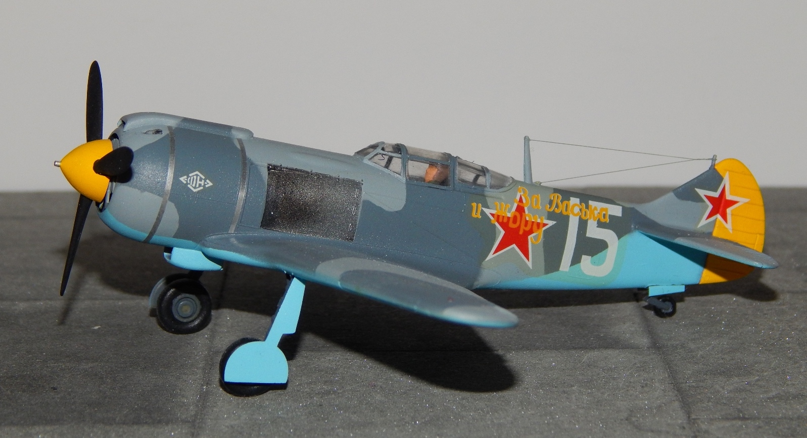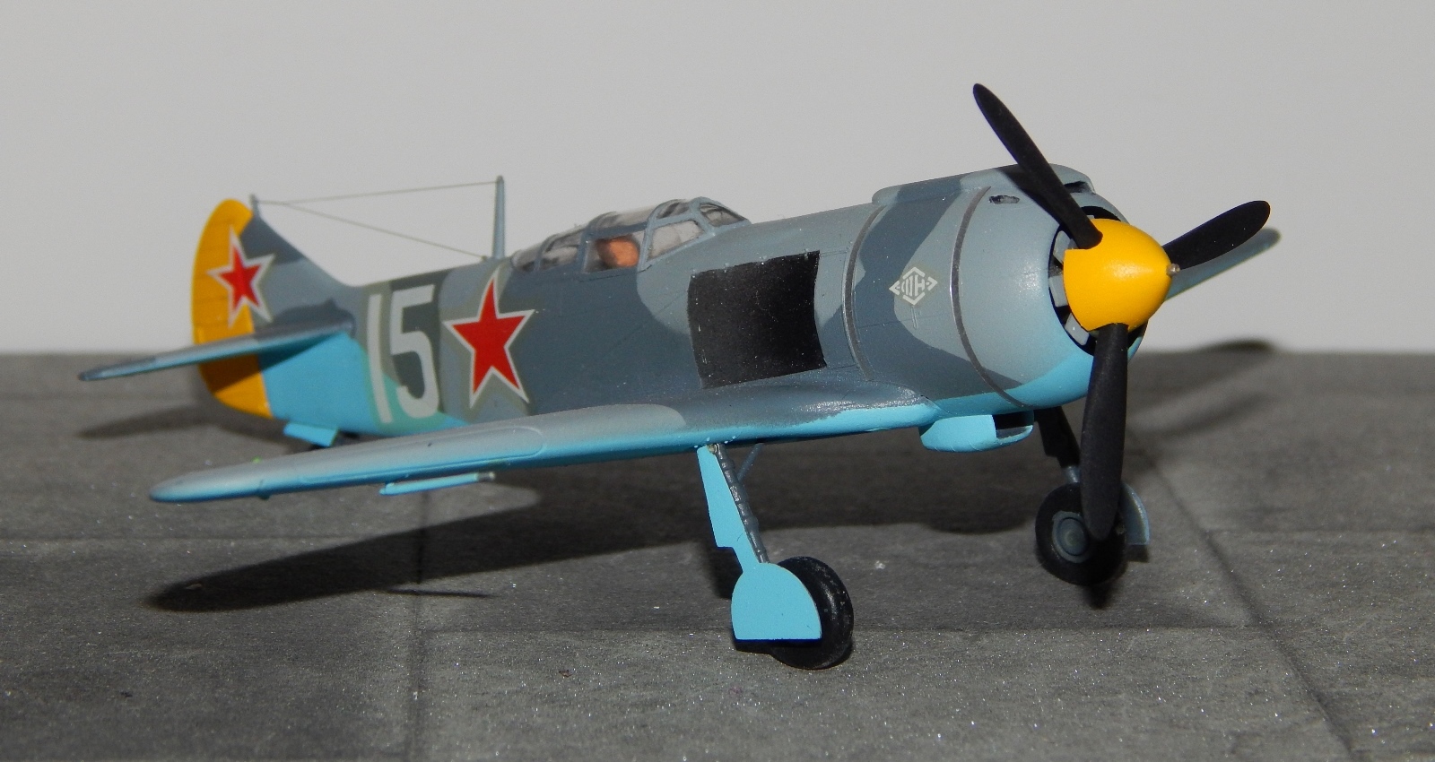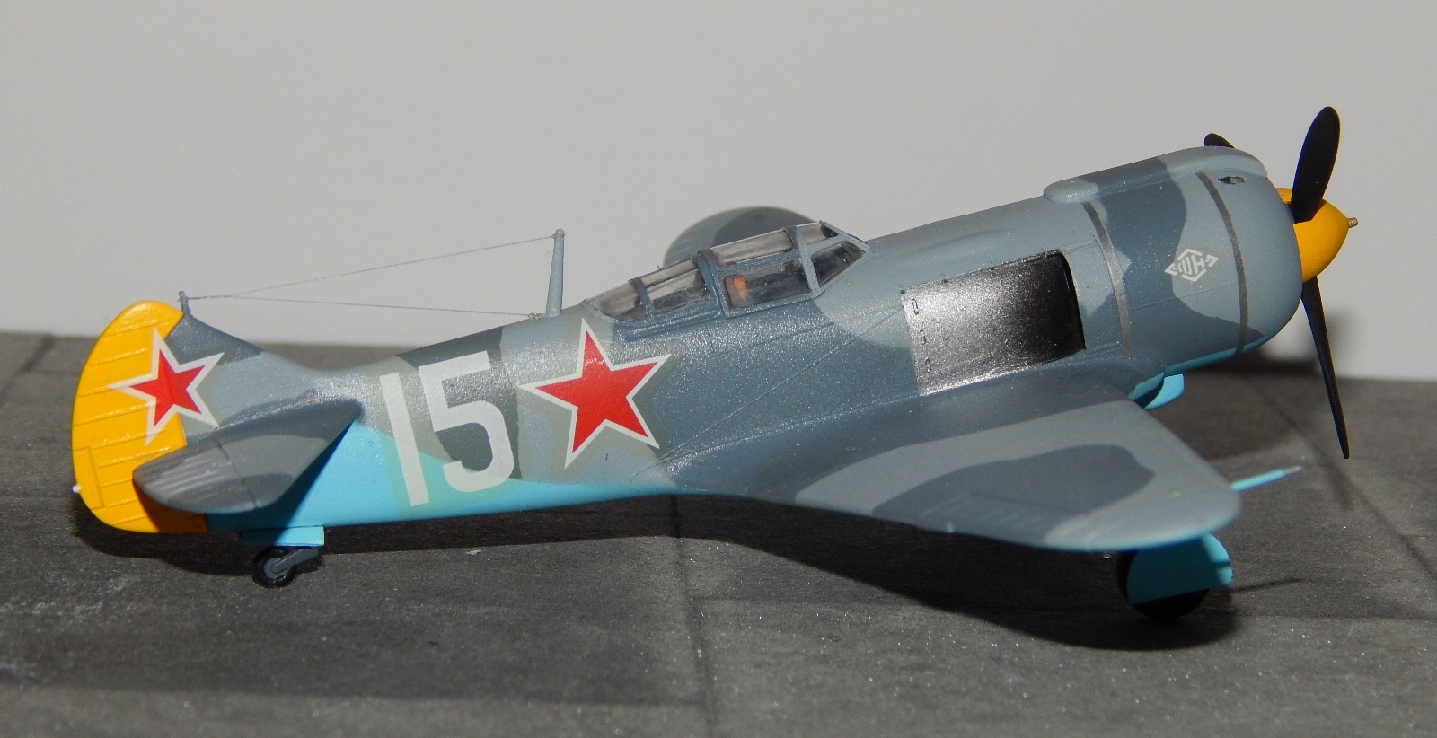 Как то даже по фото фонарь низкий и слишком обтекаемый,фюзеляж вроде высоковат,и вообще пропорции нарушены.Разбор италовского Ла 5 гдето был?