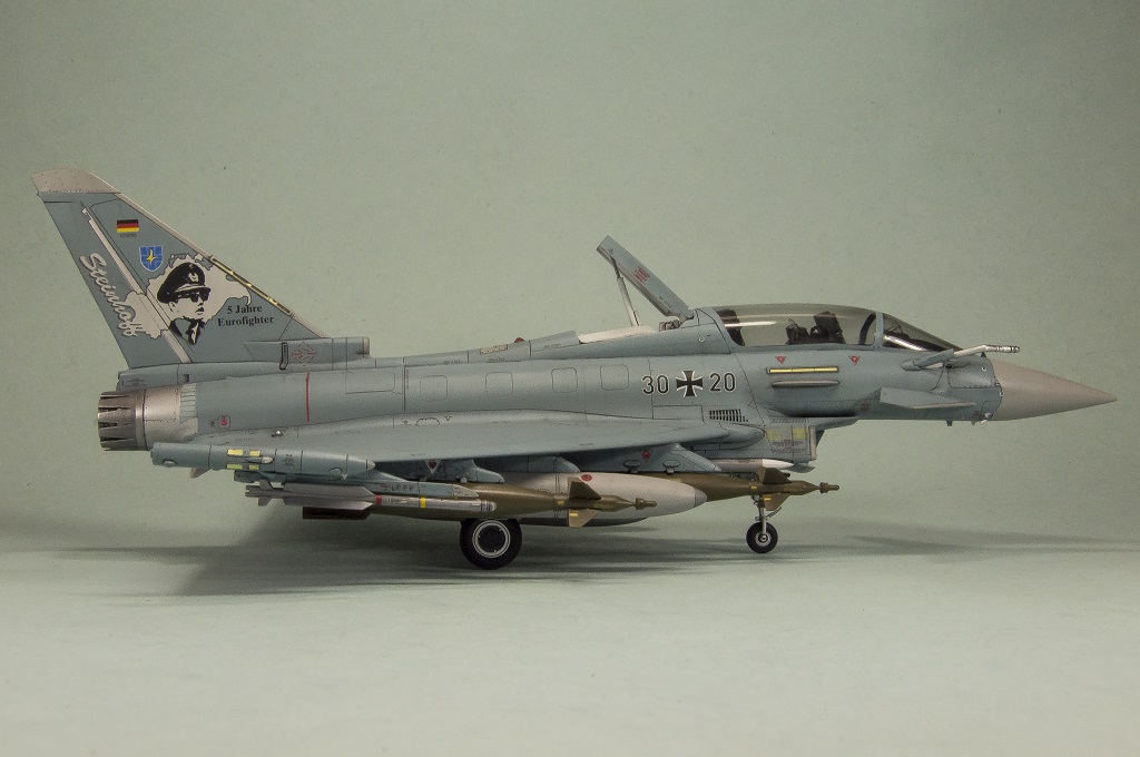 Всем доброго времени суток! Представляю Вам модель двух местную версию истребителя EUROFIGHTER TYPHOON в масштабе 1/48 от фирмы Revell, с которой я участвовал в ГБ "Европейская реактивная авиация" и к сожалению в виду объективных и субъективных причин, так и не успел во время закончить.