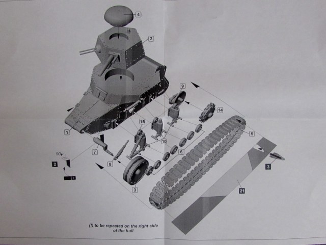 Ходовая сделана хорошо, подробно - но я бы лучше купил аналог от Bull Models - там ходовая хоть и блочно, но она прочнее. Здесь же все настолько тоненькое, что и гуляет туда-сюда, и ломается, и клеится трудно. Как будто мало этого - так еще и все пипочки-балансиры длиннее раза в 3, чем надо. Хочешь крепить катки на тележки - отрубай эти пипочки начисто, иначе уродство и кошмар. Поддерживающие ролики тоже должны быть сдвоенными - но даны одинарными; никаких стоек не предусмотрено.